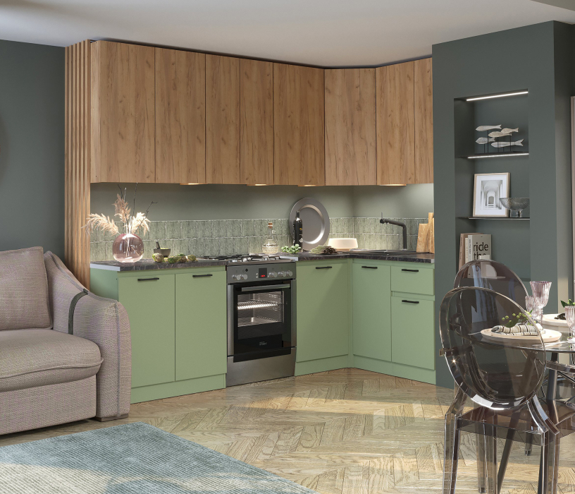 Шкаф навесной ш50 Шкаф навесной ш60 Шкаф навесной ш80 - 2 шт Шкаф навесной угловой ш60 Шкаф напольный с ящиком ш40 Шкаф напольный ш50 Шкаф напольный ш80 Шкаф напольный угловой Материал фасада-ЛДСП, Кромка ABS Материал каркаса-ЛДСП, Кромка ABS Материал ручек-Пластик Цвет ручек-Черный матовый Навес фасадов-Универсальный Тип направляющих-Шариковые полного выдвижения Тип сборки-Модули можно переставлять Вес, кг-239.1 - Петли четырехшарнирные с доводчиком - Направляющие шариковые полного выдвижения - Ручки пластиковые. - Цвет ручек - Черный матовый - Кухня столешницей не комплектуется. - Навесные модули имеют две внутренних полки, напольные модули одну внутреннюю полку - Экологически безопасное ЛДСП с классом эмиссии летучих веществ Е1 Опора подпятник с гвоздем Полкодержатель 5,4 мм металл Цвет ручек - Черный матовый Задняя стенка модулей белого цвета Столешница, бытовая техника, вытяжка, сушка, мойка и освещение в комплект не входят. Модульная кухня «Ревилья» - современный дизайн и продуманная функциональность Модульная кухня «Ревилья» - это сочетание стиля, практичности и комфорта. Широкий выбор напольных и навесных модулей различных размеров и конфигураций позволяет легко составить гарнитур под особенности вашего помещения - от компактной кухни до просторного кухонного пространства. Лаконичные линии, выразительные детали и современные материалы делают «Ревилью» универсальным решением для интерьера любого стиля. Функциональность и исполнение Каждый элемент кухни «Ревилья» продуман до мелочей. Навесные шкафы оснащены двумя внутренними полками, напольные — одной, что обеспечивает удобное и рациональное хранение посуды и кухонных принадлежностей. Задние стенки белого цвета придают конструкции аккуратный и эстетичный вид. Кухня не комплектуется столешницей, что даёт возможность подобрать её отдельно — под нужную текстуру, цвет и толщину, создавая индивидуальный облик гарнитура. Фурнитура и конструктивные решения • Петли четырёхшарнирные с доводчиком - лёгкое, плавное и бесшумное открывание дверей. • Шариковые направляющие полного выдвижения обеспечивают комфортное использование ящиков и доступ к их содержимому. • Ручки из пластика цвета “чёрный матовый” добавляют контраст и подчёркивают современный характер кухни. • Металлические полкодержатели диаметром 5,4 мм обеспечивают надёжное крепление и устойчивость полок. Характеристики модулей • Высота верхних шкафов - 91 см • Глубина верхних шкафов - 31,7 см • Высота нижних шкафов - 82,4 см • Глубина нижних шкафов - 51,9 см • Материал - ЛДСП 16 мм, экологический класс E1 (безопасно для жилых помещений) Важно: столешница, бытовая техника, вытяжка, мойка, сушка и освещение в комплект не входят, что даёт свободу выбора под индивидуальный интерьер.