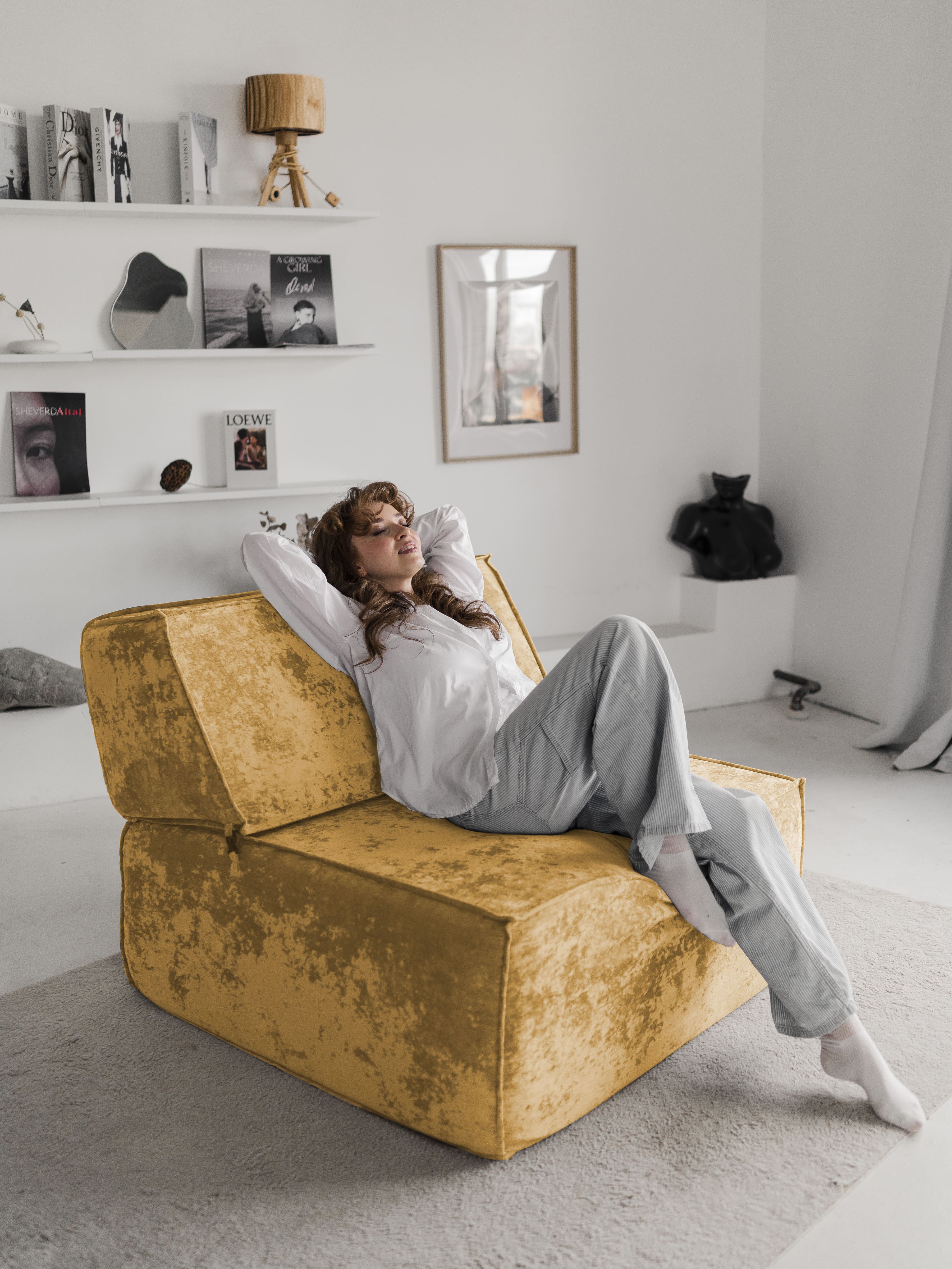 Отзывы о Столплит Бескаркасное кресло Клайд,плюше Альфа оранжевый