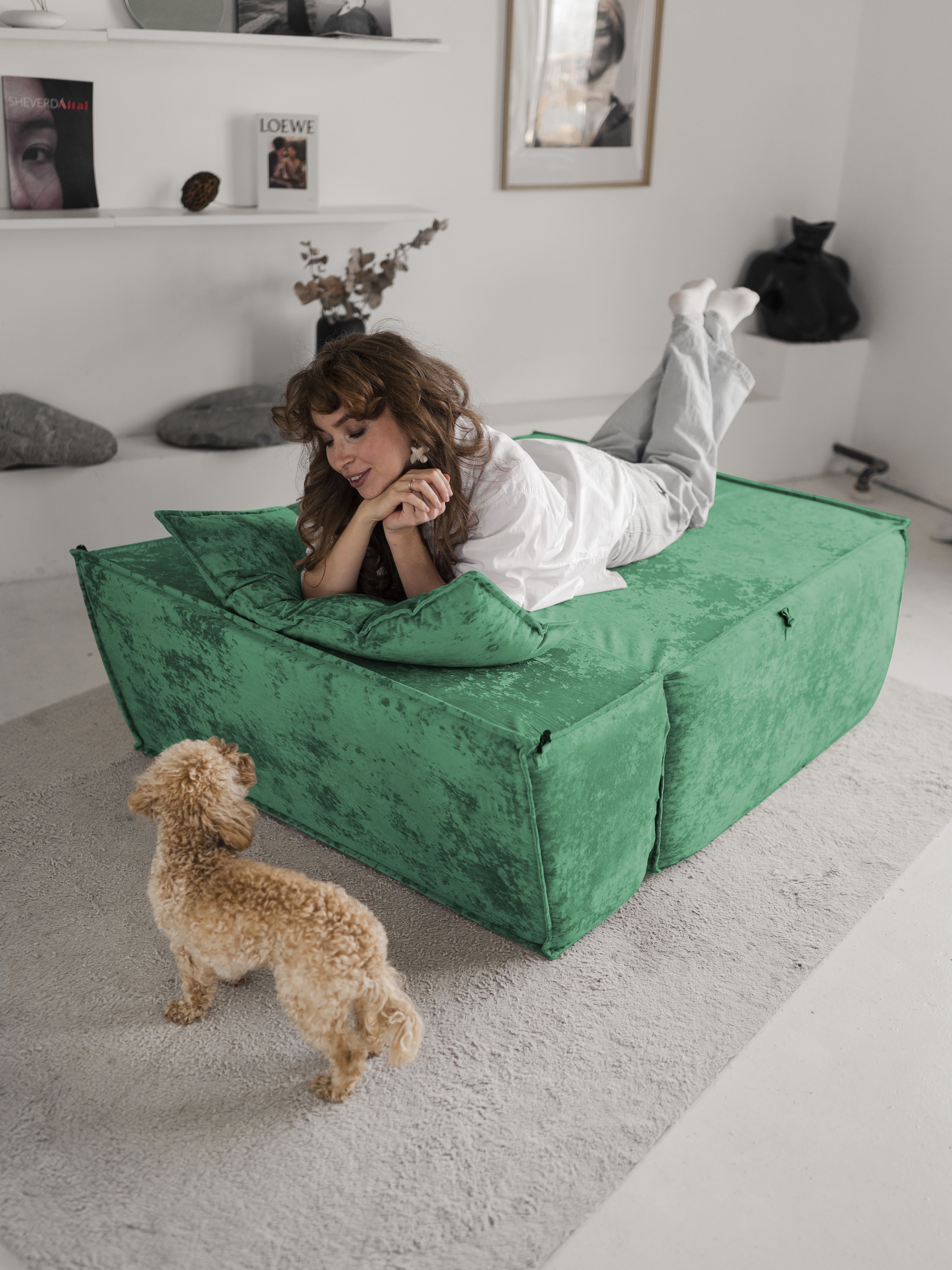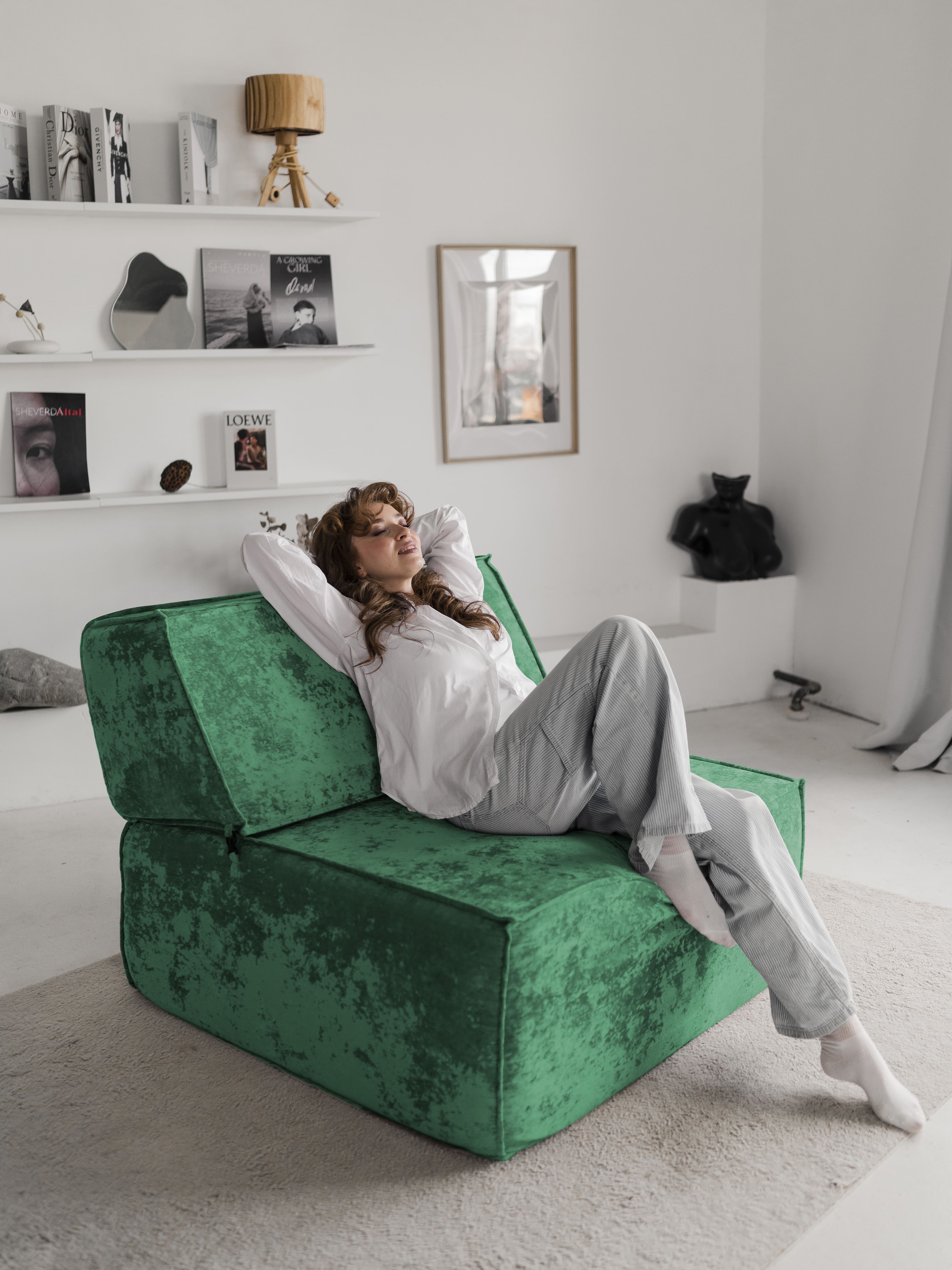 Отзывы о Столплит Бескаркасное кресло Клайд,плюше Велюр зеленый