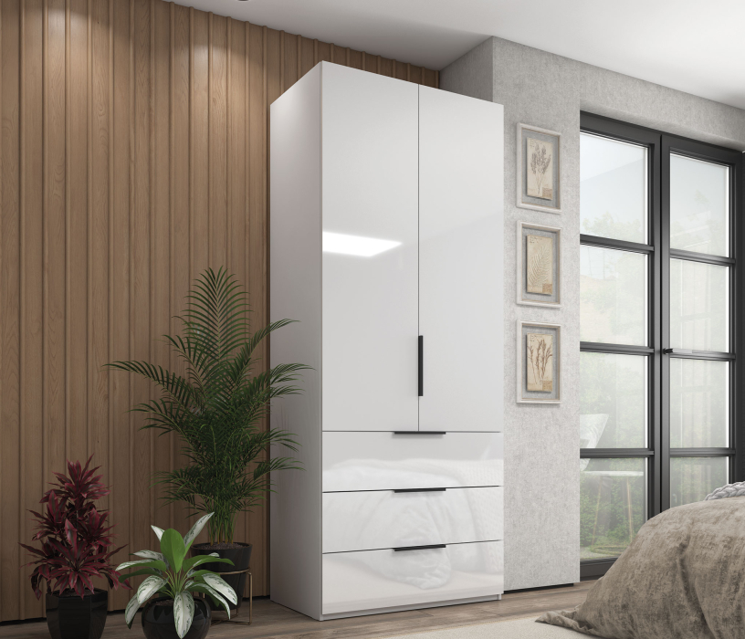 Отзывы о Столплит Шкаф 2-х дверный с ящиками 90 см Люкс Белый/Белый глянец