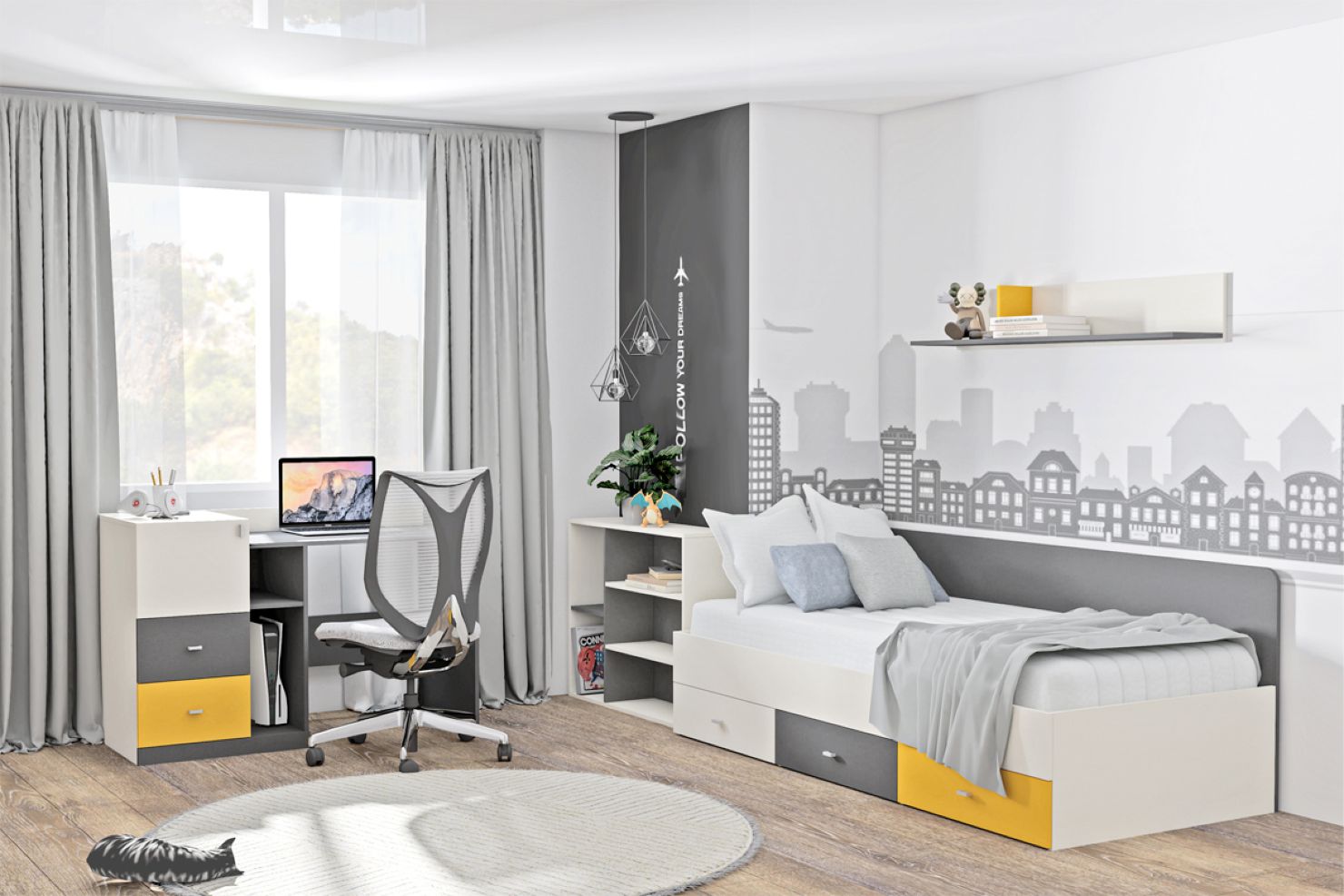 Кровать Клео арт.010 (Графит/Миндаль/Солнечный)