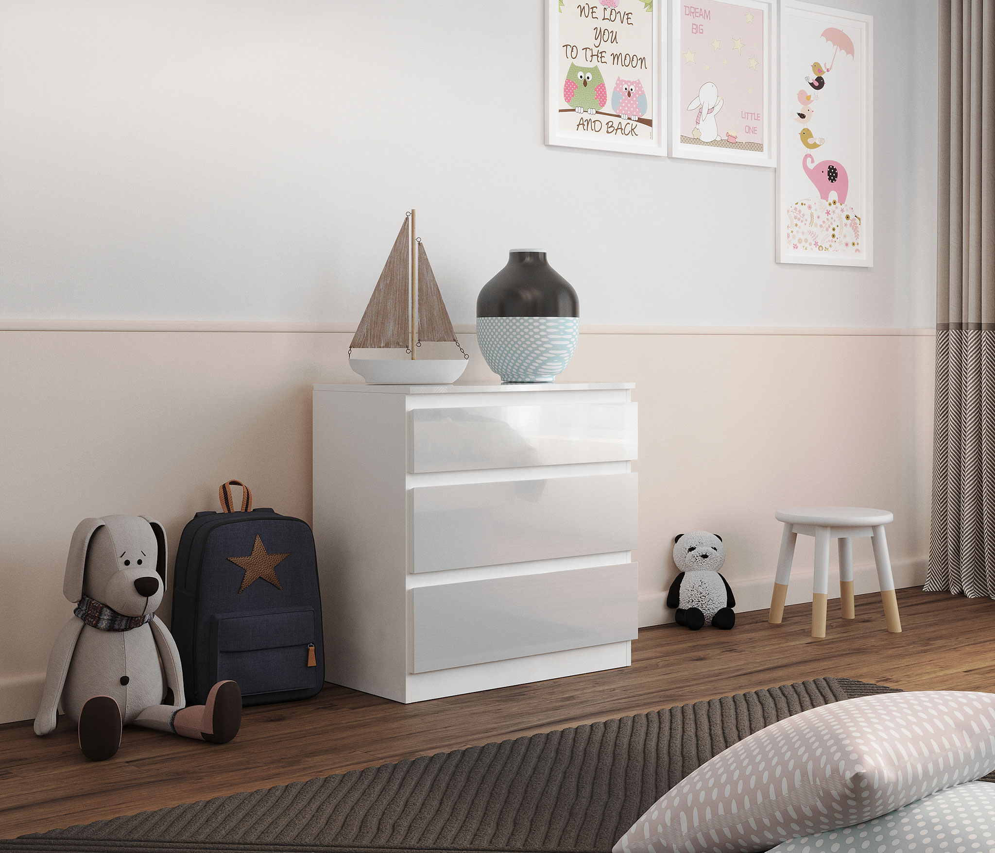 Комод подойдёт для спальни, гостиной, прихожей или детской комнаты, помогая поддерживать порядок и визуальную лёгкость интерьера.