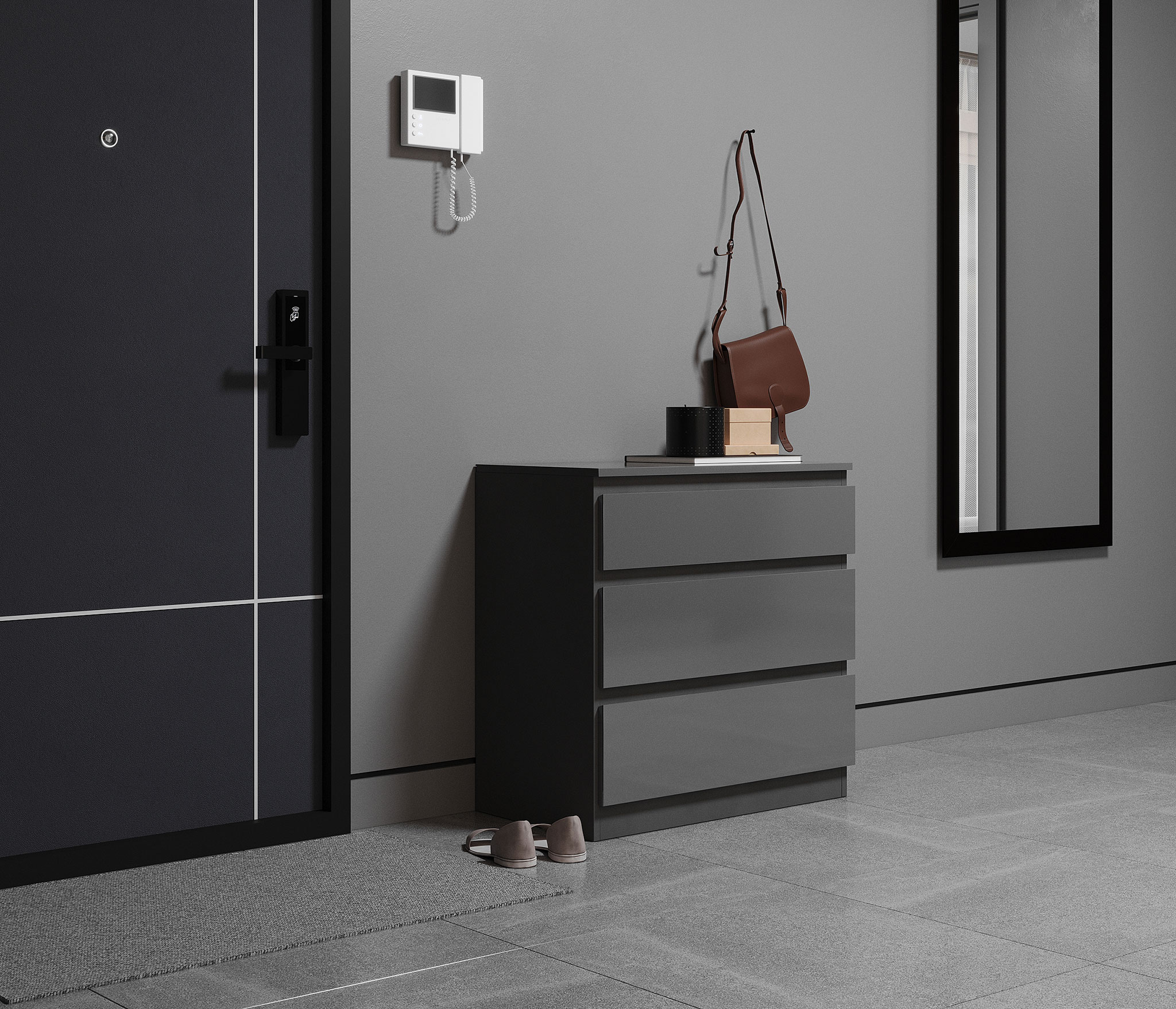 Модель оснащена тремя вместительными выдвижными ящиками: удобно разместить бельё, одежду, документы и другие повседневные вещи.