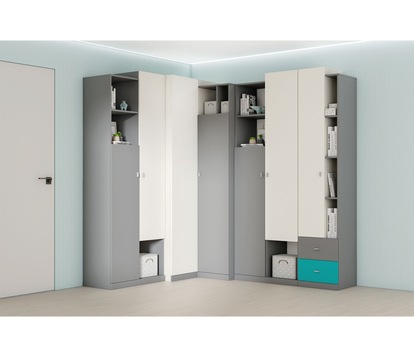 - Шкаф угловой ШкУ-1. Внутреннее наполнение: две металлические штанги и полки для хранения (954х2220х954 мм);