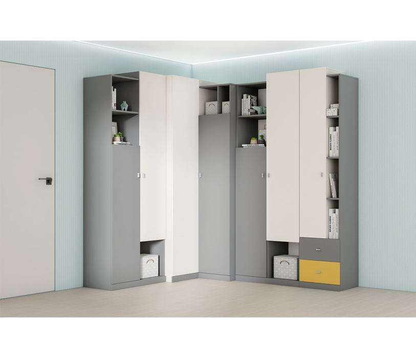 - Шкаф угловой ШкУ-1. Внутреннее наполнение: две металлические штанги и полки для хранения (954х2220х954 мм);