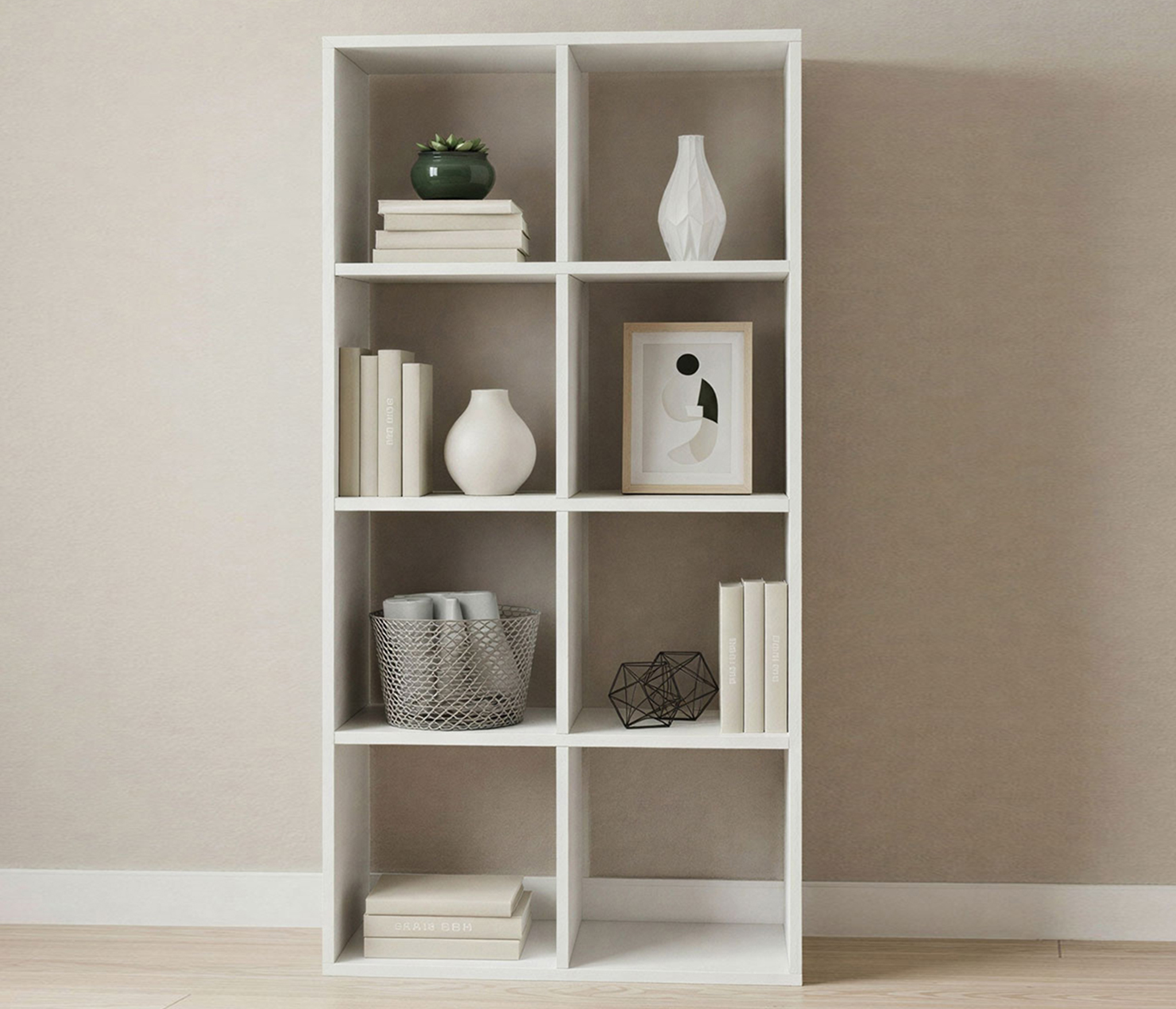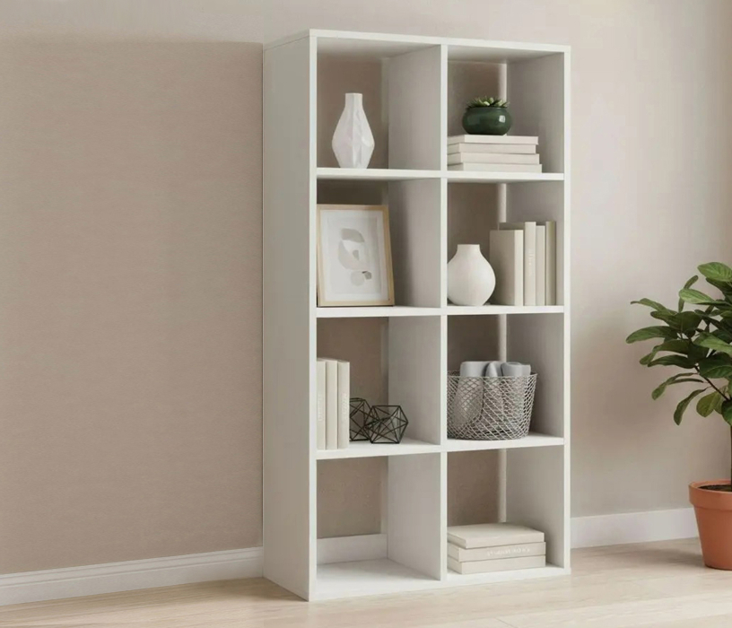 - 8 квадратных ячеек помогают системно разложить книги, коробки и аксессуары;