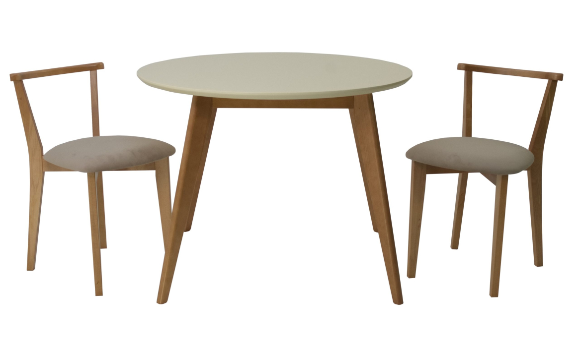 Комплект из деревянного стола Сканди на каркасе из натурального дерева и 2 стула Франк отлично подойдет к интерьеру, выдержанному в скандинавском стиле. Данный комплект станет центральным элементом в гостиной, столовой зоне, на кухне, позволив создать уютное обеденное место, где смогут собираться члены дружной семьи и их гости.У модели круглая форма столешницы. Такое решение исключит риск сколов и обеспечит безопасность, в том числе, детям.Комплект выполнен в красивой комбинации цветов - орех, слоновая кость. Сочетание изысканного дизайна и высокого качества исполнения - главная особенность комплекта.Столешница выполнена из материалов с великолепными эксплуатационными свойствами - МДФ (Материал создается на основе натуральной древесины. Практичен, надежен, имеет однородную гладкую структуру), шпон.Мебель проста в уходе - для поддержания первозданного вида достаточно использовать простую чуть влажную салфетку по мере необходимости.Состав комплекта:- стол F004112NUS- стулья R101707N02