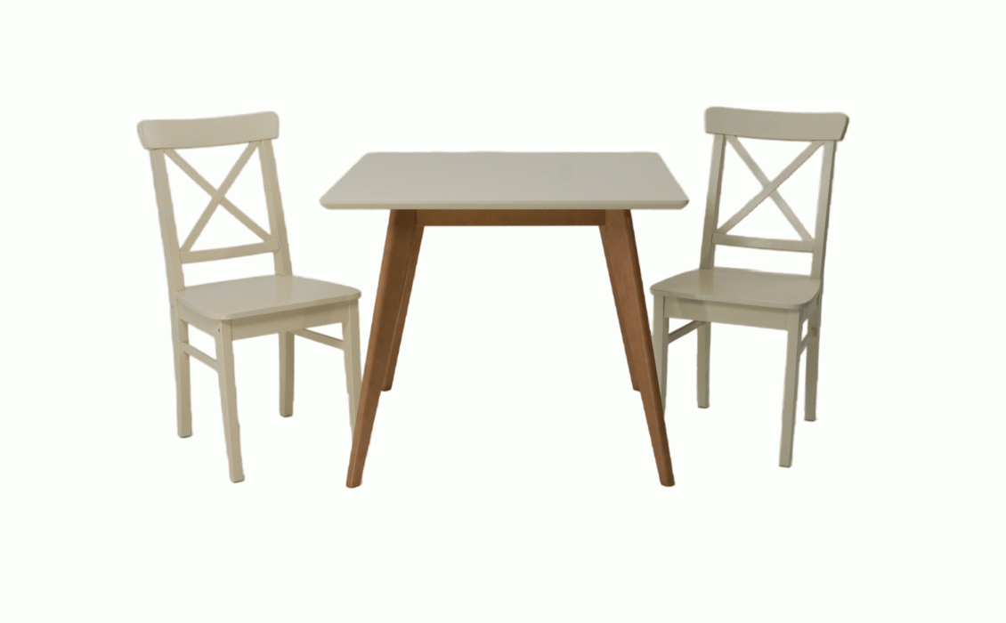 Комплект из деревянного стола Сканди на каркасе из натурального дерева и 2 стула Ингольф отлично подойдет к интерьеру, выдержанному в скандинавском стиле. Данный комплект станет центральным элементом в гостиной, столовой зоне, на кухне, позволив создать уютное обеденное место, где смогут собираться члены дружной семьи и их гости.У модели квадратная форма столешницы, со скруглением углов. Такое решение исключит риск сколов и обеспечит безопасность, в том числе, детям.Комплект выполнен в красивой комбинации цветов - орех, слоновая кость. Сочетание изысканного дизайна и высокого качества исполнения - главная особенность комплекта.Столешница выполнена из материалов с великолепными эксплуатационными свойствами - МДФ (Материал создается на основе натуральной древесины. Практичен, надежен, имеет однородную гладкую структуру), шпон.Мебель проста в уходе - для поддержания первозданного вида достаточно использовать простую чуть влажную салфетку по мере необходимости.Состав комплекта:- стол F404111NUS- стулья R100741S00