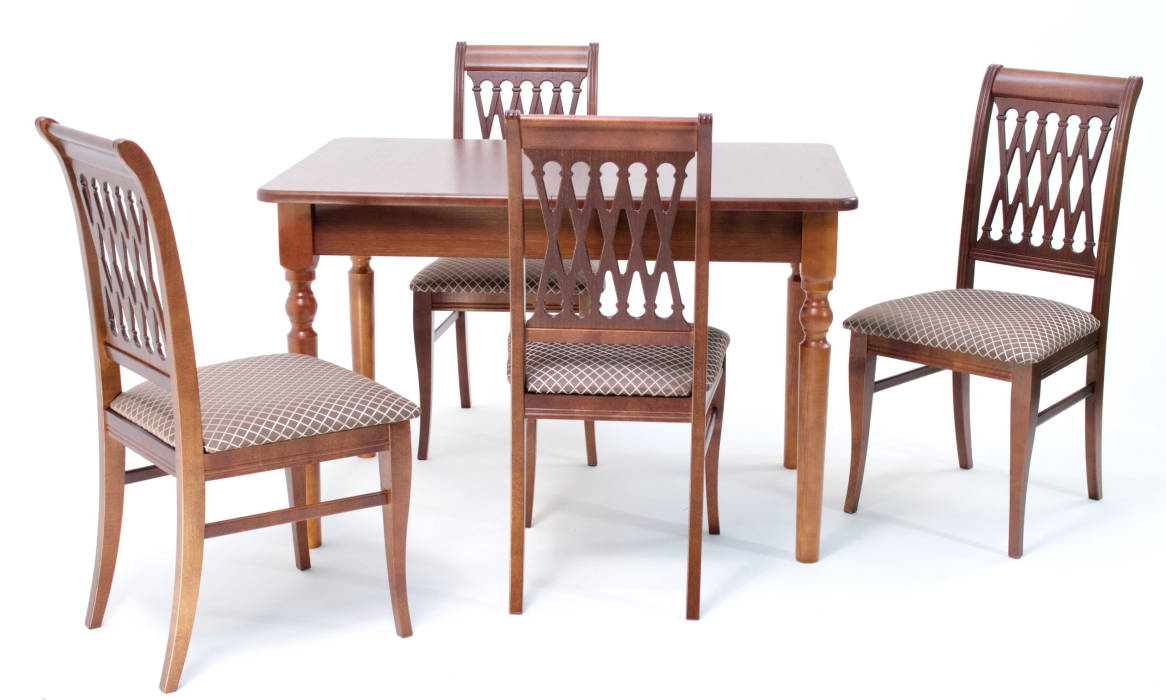 Комплект из деревянного стола Верди на каркасе из натурального дерева и 4 стульев Рич отлично подойдет к интерьеру, выдержанному в классическом или софременном стиле. Данный комплект станет центральным элементом в гостиной, столовой зоне, на кухне, позволив создать уютное обеденное место, где смогут собираться члены дружной семьи и их гости.У модели скругленные углы столешницы. Такое решение исключит риск сколов и обеспечит безопасность, в том числе, детям.Комплект выполнен в красивом цвете - орех. Сочетание изысканного дизайна и высокого качества исполнения - главная особенность комплекта.Столешница выполнена из материалов с великолепными эксплуатационными свойствами - МДФ (Материал создается на основе натуральной древесины. Практичен, надежен, имеет однородную гладкую структуру), шпон.Мебель проста в уходе - для поддержания первозданного вида достаточно использовать простую чуть влажную салфетку по мере необходимости.