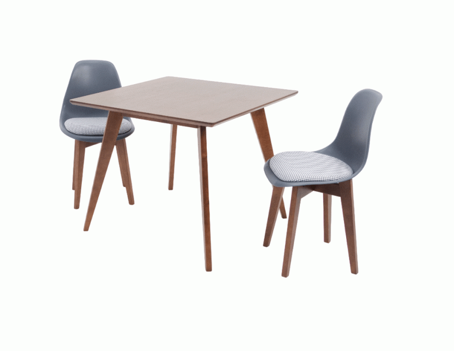 Комплект из деревянного стола Сканди на каркасе из натурального дерева и 2 стула Франк отлично подойдет к интерьеру, выдержанному в скандинавском стиле. Данный комплект станет центральным элементом в гостиной, столовой зоне, на кухне, позволив создать уютное обеденное место, где смогут собираться члены дружной семьи и их гости.У модели квадратная форма столешницы, со скруглением углов. Такое решение исключит риск сколов и обеспечит безопасность, в том числе, детям.Комплект выполнен в красивом цвете - орех. Сочетание изысканного дизайна и высокого качества исполнения - главная особенность комплекта.Столешница выполнена из материалов с великолепными эксплуатационными свойствами - МДФ (Материал создается на основе натуральной древесины. Практичен, надежен, имеет однородную гладкую структуру), шпон.Мебель проста в уходе - для поддержания первозданного вида достаточно использовать простую чуть влажную салфетку по мере необходимости.Состав комплекта:- стол F404114W00- стулья R101771W1G
