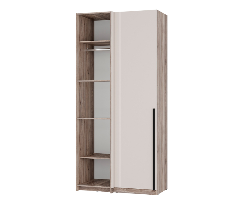 Угловой шкаф «Урбан» состоит из отделения с хромированной штангой для плечиков, а также верхние и нижние ниши.