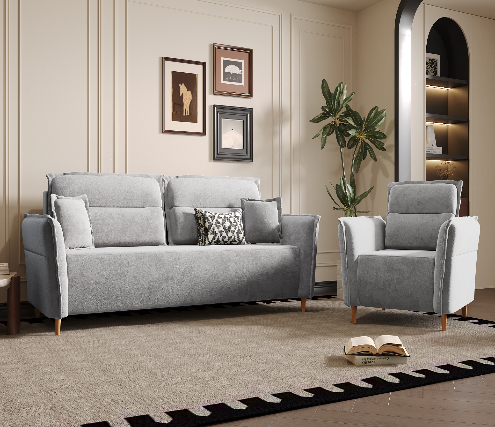 Современная модель мягкого кресла Пуэр для гостиной без механизма раскладывания.