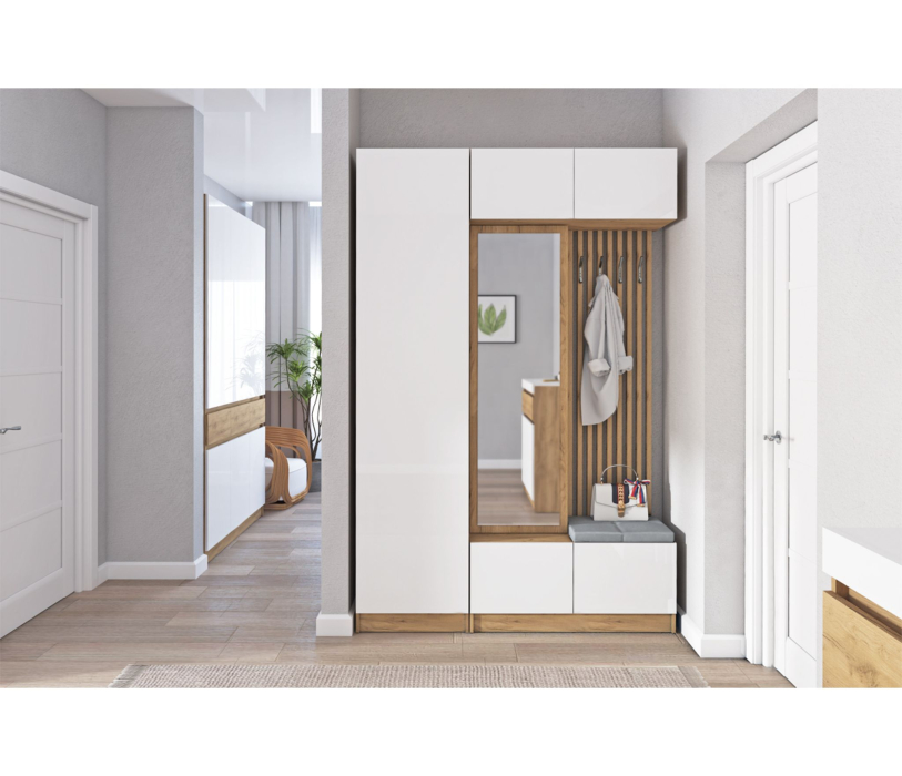 - Вешалка (верх/низ - ниши, ниша с полками и зеркалом, четыре крючка для одежды), 1000х2400х424 мм.