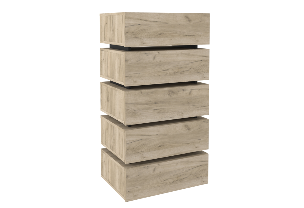 Комод OSLO 6 – практичный и вместительный. Лаконичные гладкие фасады ящиков в декоре Дуб Серый в комбинации с контрастными черными планками делают комод поистине уникальным. Пять выдвижных ящиков глубиной 14 см способны поместить в себя все необходимое, а компактная конструкция сэкономит место в комнате. Все ящики оснащены направляющими полного выдвижения. Такие направляющие делают открывание и закрывание бесшумным.