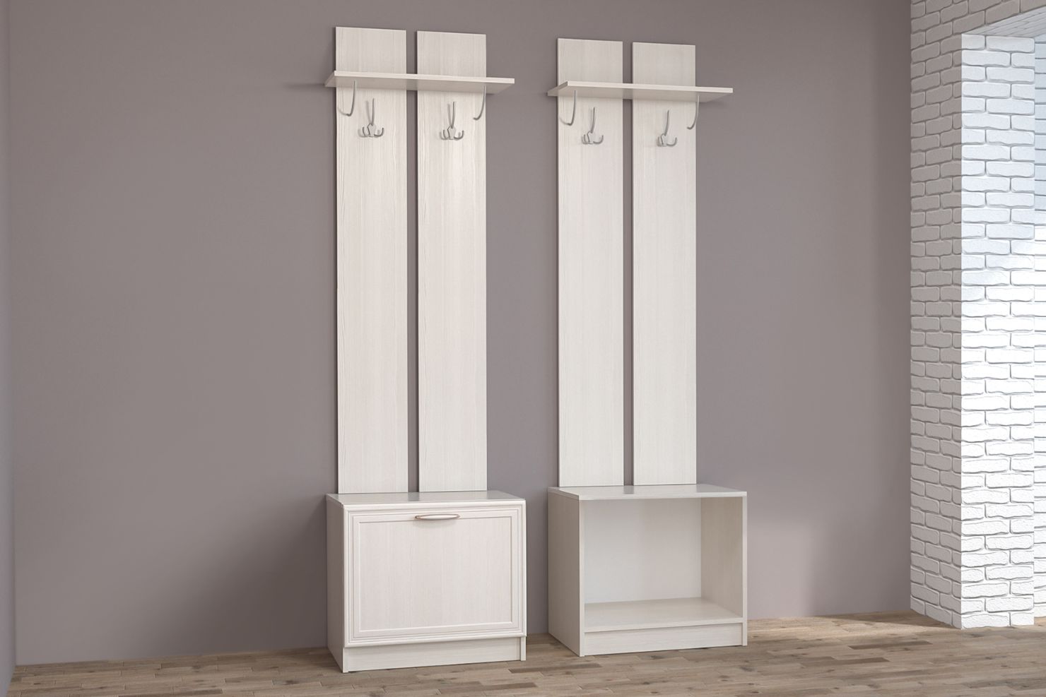 два трёхрожковых крючка для одежды) с обувницей