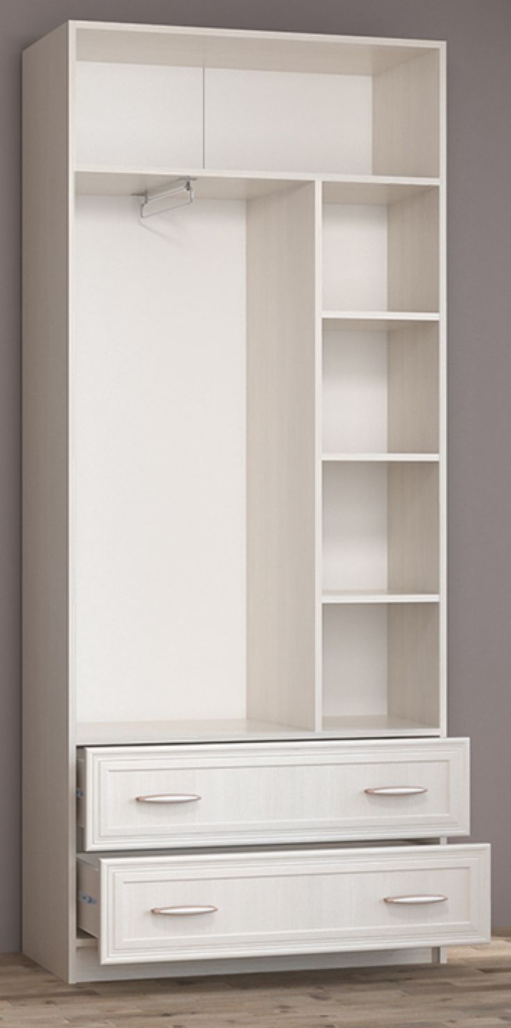 тремя полками, выдвижной евро штанге и двум выдвижным ящикам.