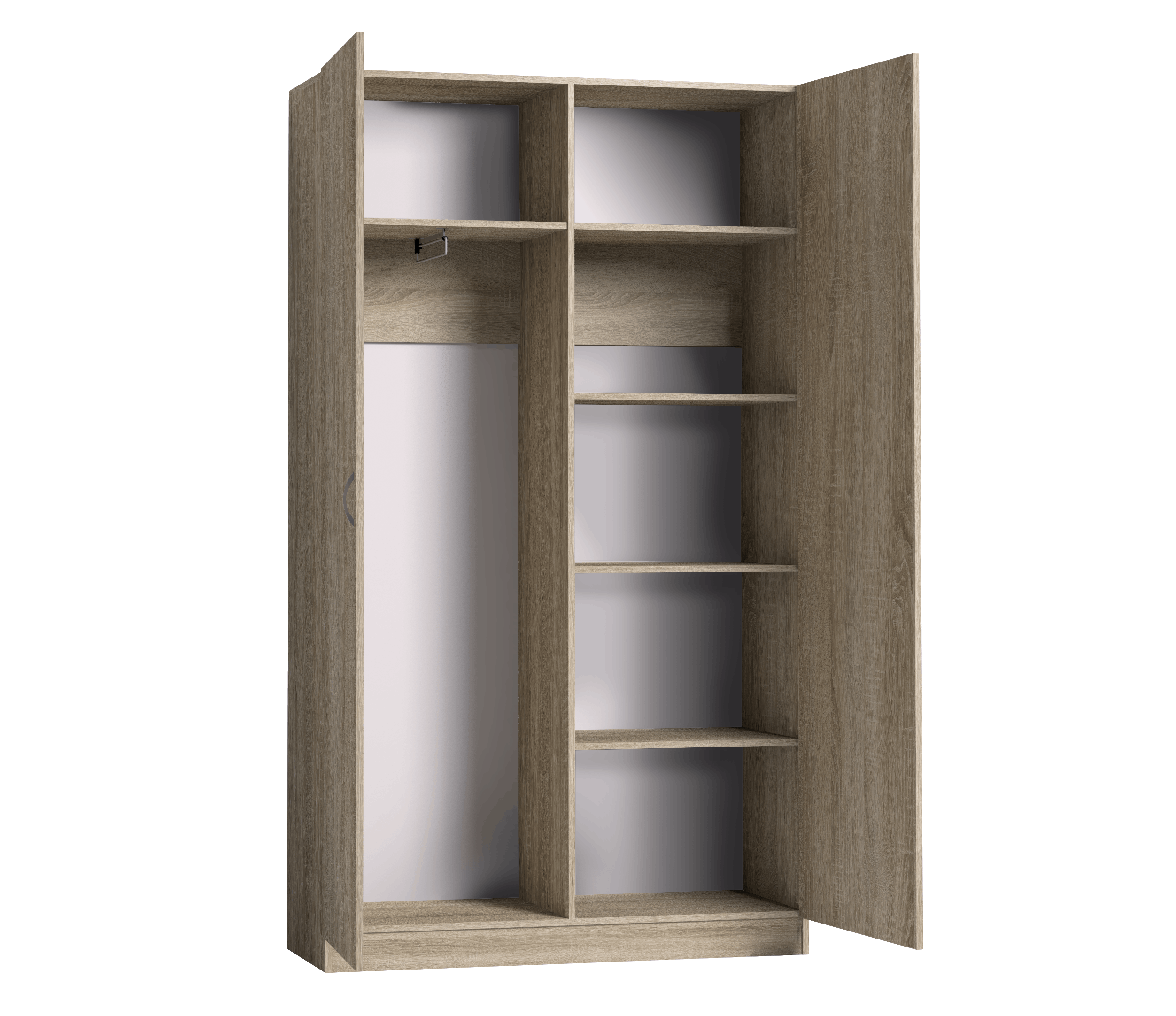 Двухдверные шкафы привычны, просты и понятны всем покупателям, они не отпугивают сложным дизайном. За счет широкой вариативности декоров, наши платяные шкафы впишутся в интерьер любой квартиры и могут стать дополнением к уже существующей мебели. Внутреннее наполнение модуля Шкаф платяной 45 состоит из выдвижной штанги и ряда полок. Нагрузка на штангу и полки составляет до 10 кг (на каждую). Такие шкафы гармонично дополнят тесные коридоры и небольшие комнаты. Рекомендуем обязательно крепить такие шкафы к стене за подвесы!