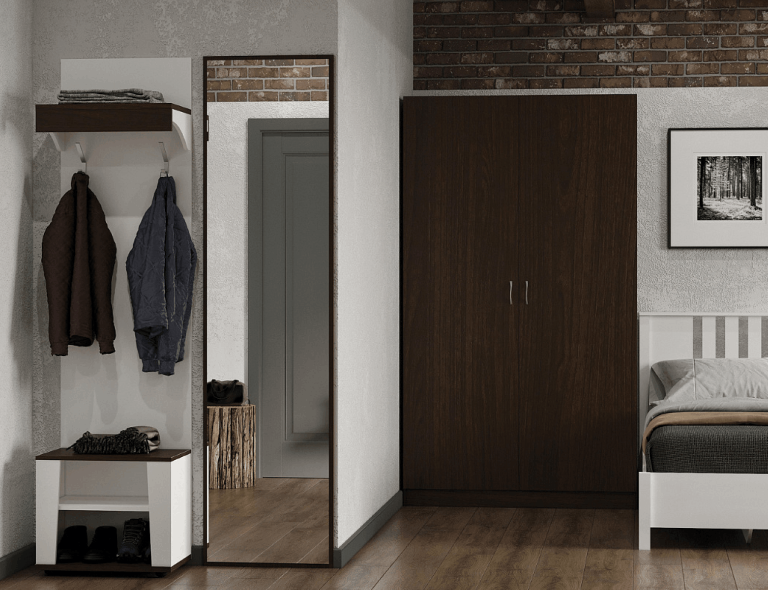 Двухдверные шкафы привычны, просты и понятны всем покупателям, они не отпугивают сложным дизайном. За счет широкой вариативности декоров, наши платяные шкафы впишутся в интерьер любой квартиры и могут стать дополнением к уже существующей мебели. Внутреннее наполнение модуля Шкаф платяной 45 состоит из выдвижной штанги и ряда полок. Нагрузка на штангу и полки составляет до 10 кг (на каждую). Такие шкафы гармонично дополнят тесные коридоры и небольшие комнаты. Рекомендуем обязательно крепить такие шкафы к стене за подвесы!