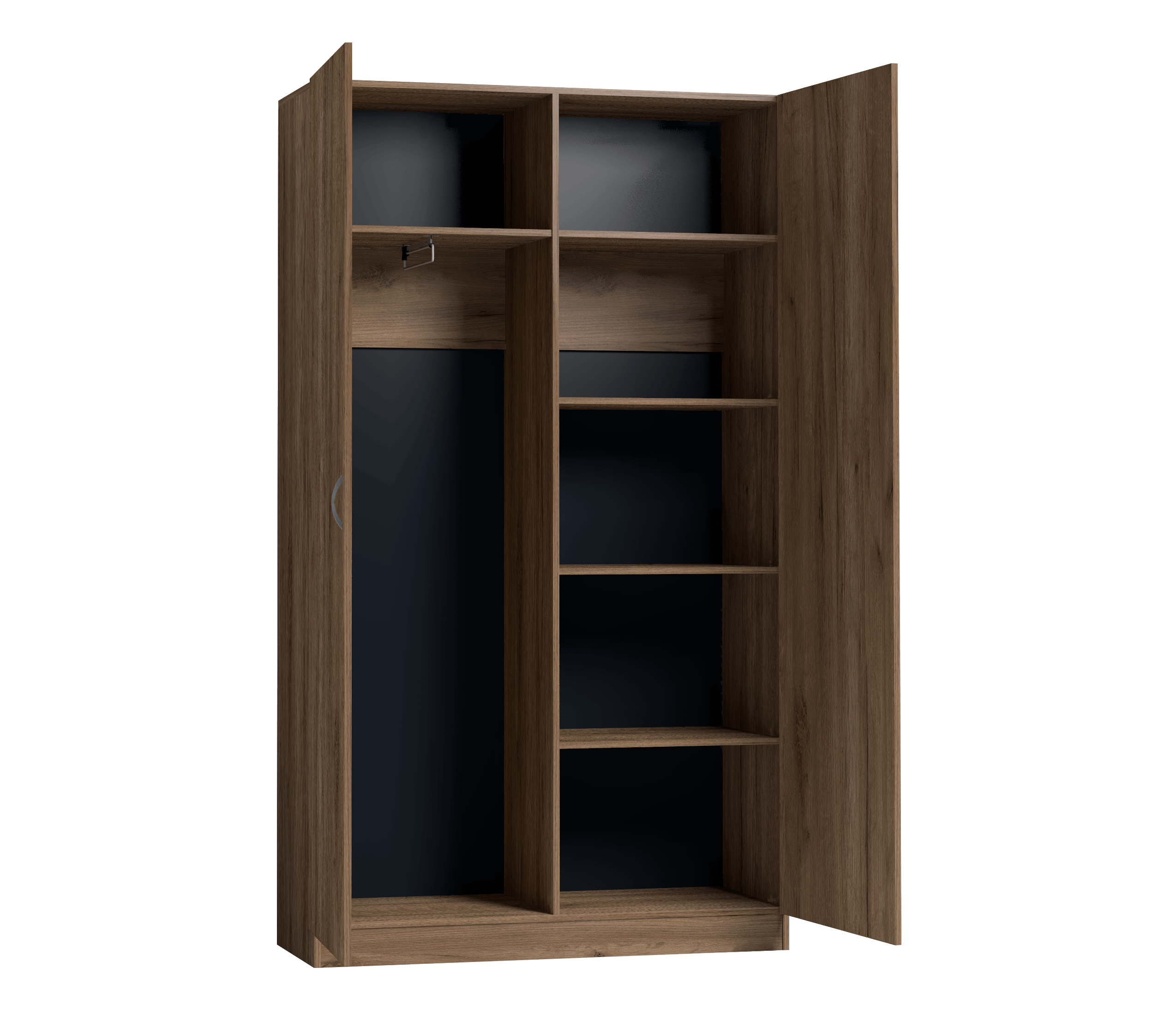 Двухдверные шкафы привычны, просты и понятны всем покупателям, они не отпугивают сложным дизайном. За счет широкой вариативности декоров, наши платяные шкафы впишутся в интерьер любой квартиры и могут стать дополнением к уже существующей мебели. Внутреннее наполнение модуля Шкаф платяной 45 состоит из выдвижной штанги и ряда полок. Нагрузка на штангу и полки составляет до 10 кг (на каждую). Такие шкафы гармонично дополнят тесные коридоры и небольшие комнаты. Рекомендуем обязательно крепить такие шкафы к стене за подвесы!