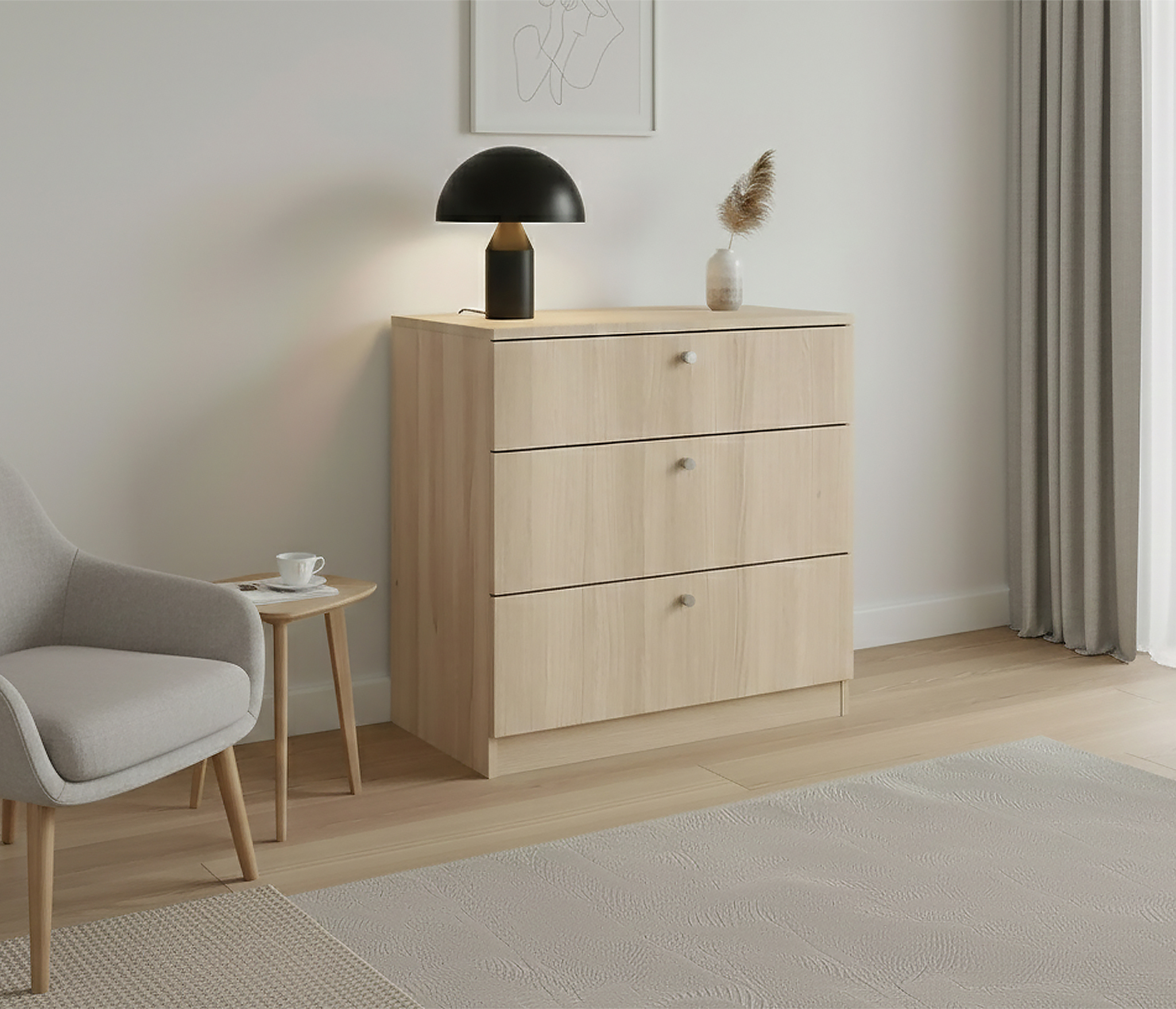 - компактная глубина позволяет разместить комод даже в небольших комнатах;