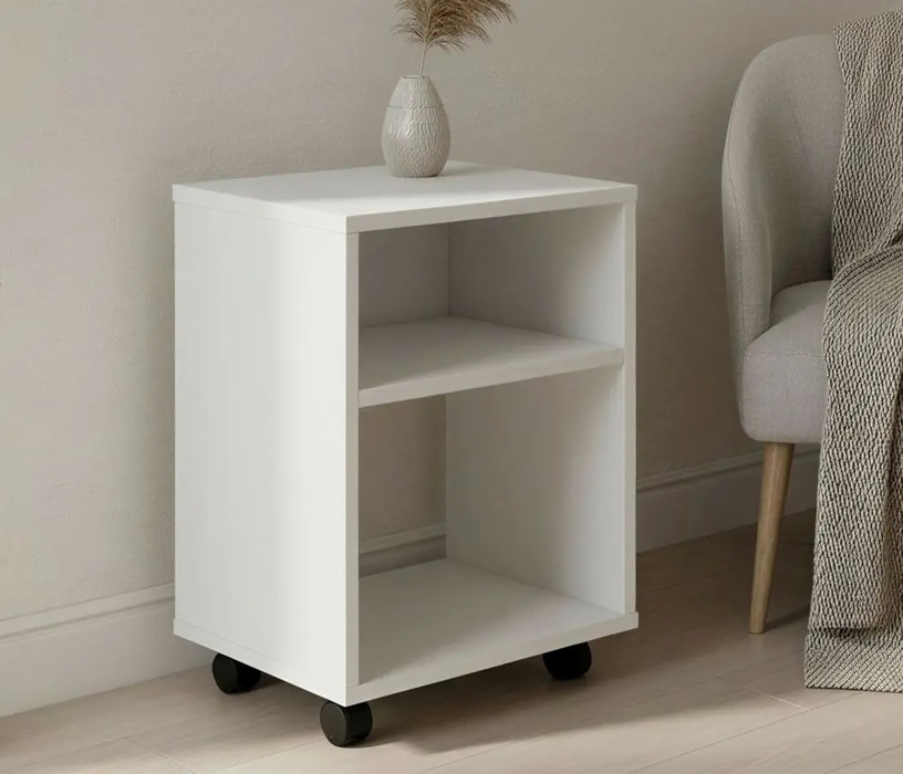 Благодаря колёсикам тумбу легко перемещать, менять её положение в комнате или использовать как мобильный вспомогательный столик возле кресла или дивана.