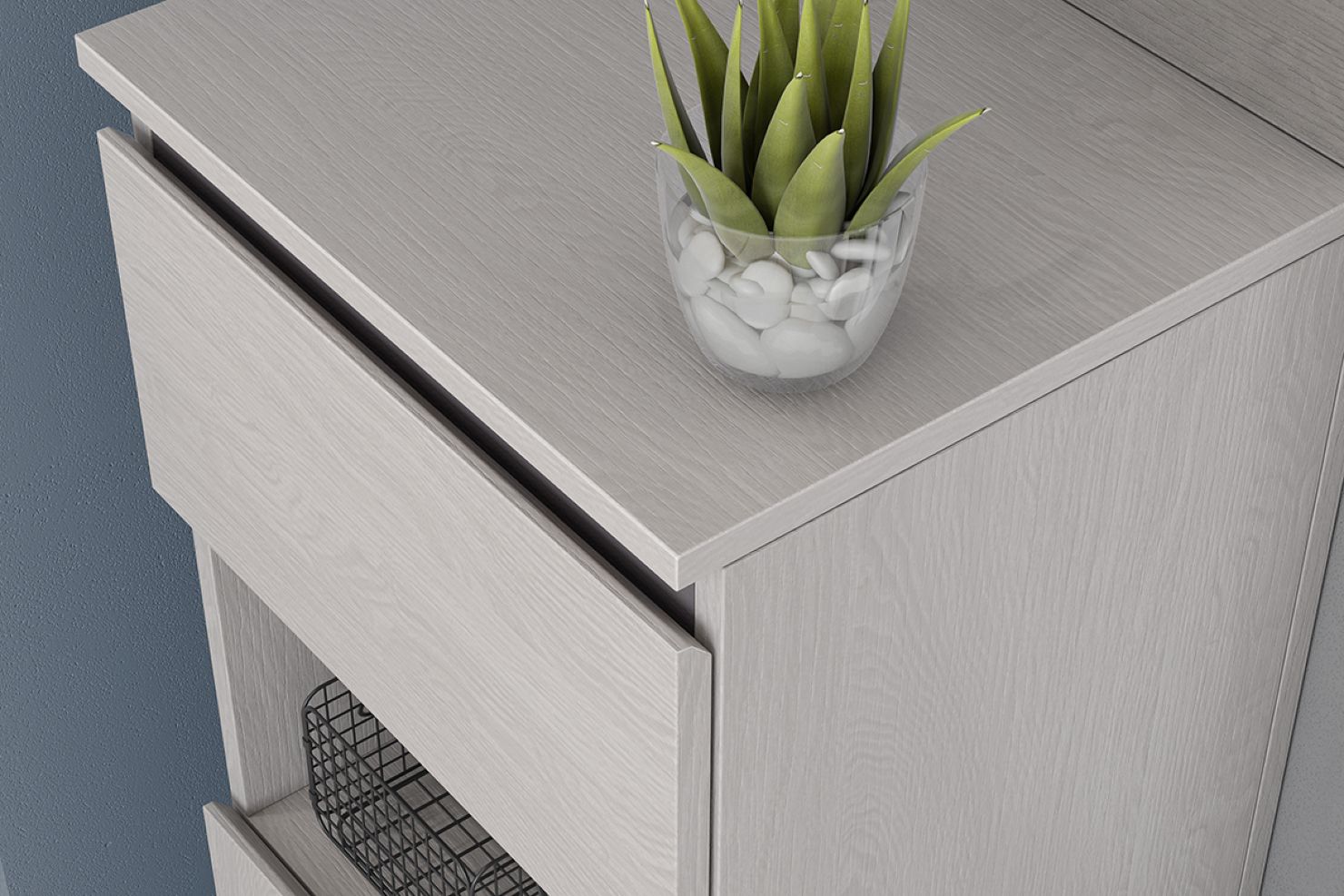 благодаря наличию тумбы с выдвижным ящиком и нишами,
