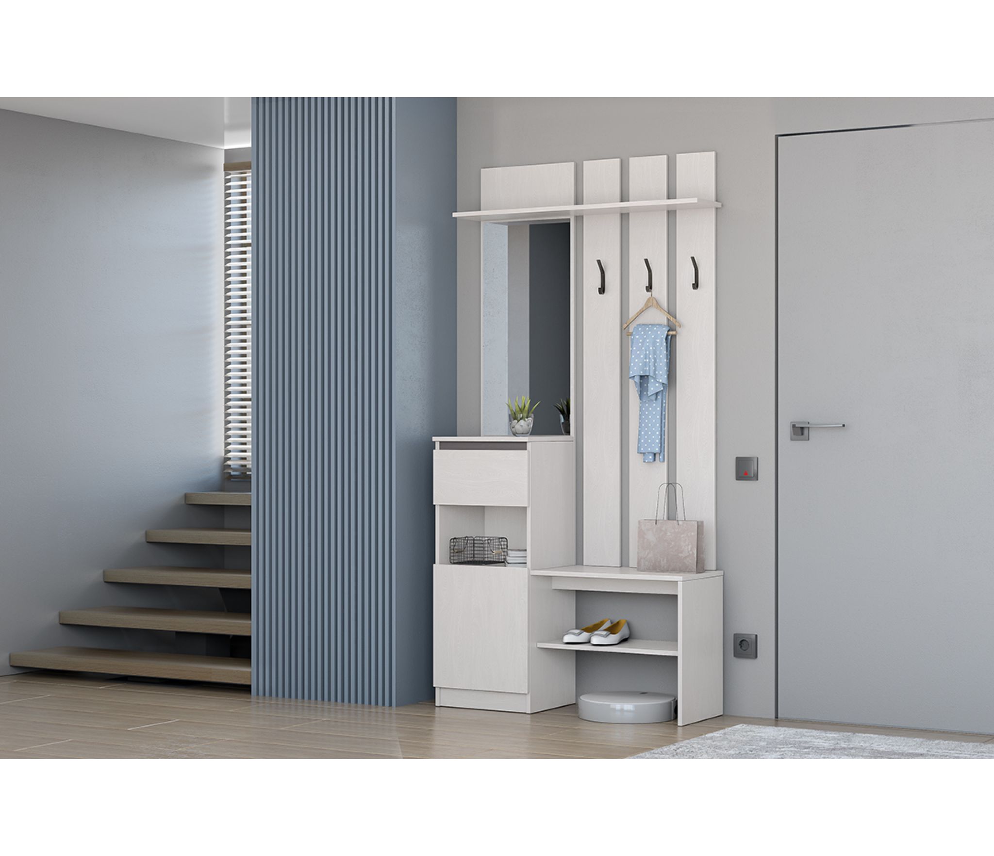 антресольной полки, открытой обувницы и зеркала,