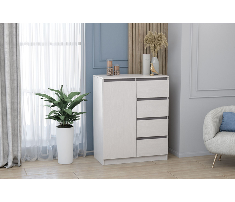 Комод с четырьмя вместительными ящиками и закрытой нишей с полками внутри -