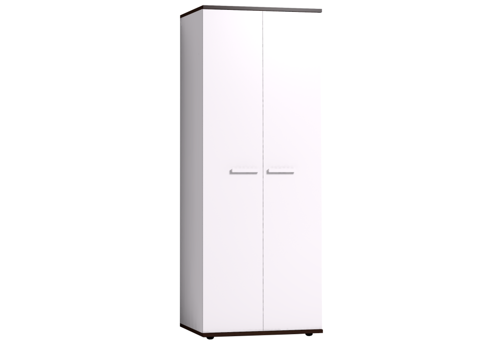 Двустворчатый Норвуд 12 Шкаф для одежды в белом декоре будет уместен как в гостиной, так и в спальне. Контрастный белому декор Орех шоколадный верхней и нижней деталей шкафа придает изюминку этому модулю. Внутреннее наполнение небольшого шкафа состоит из стационарной штанги длиной 757 мм и верхней полки. Распашные фасады шкафа открываются за светлые ручки из массива дерева.