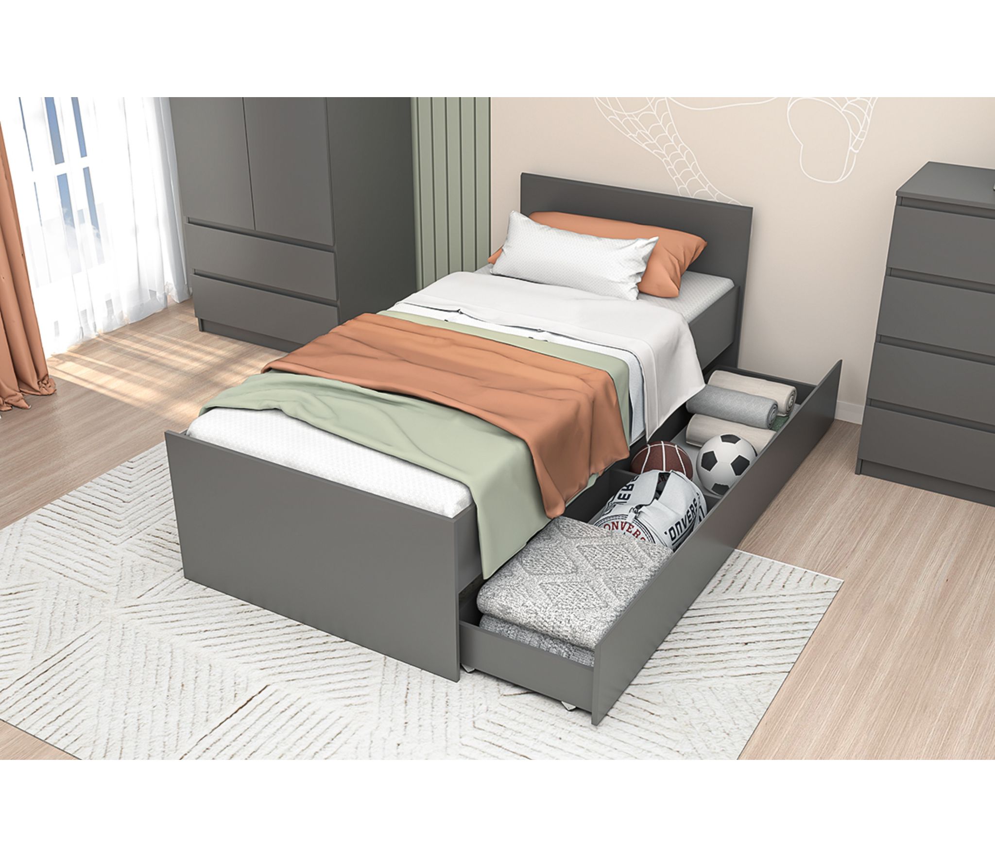 идеально подойдёт как для комнаты подростка, так и для спальни взрослого человека.