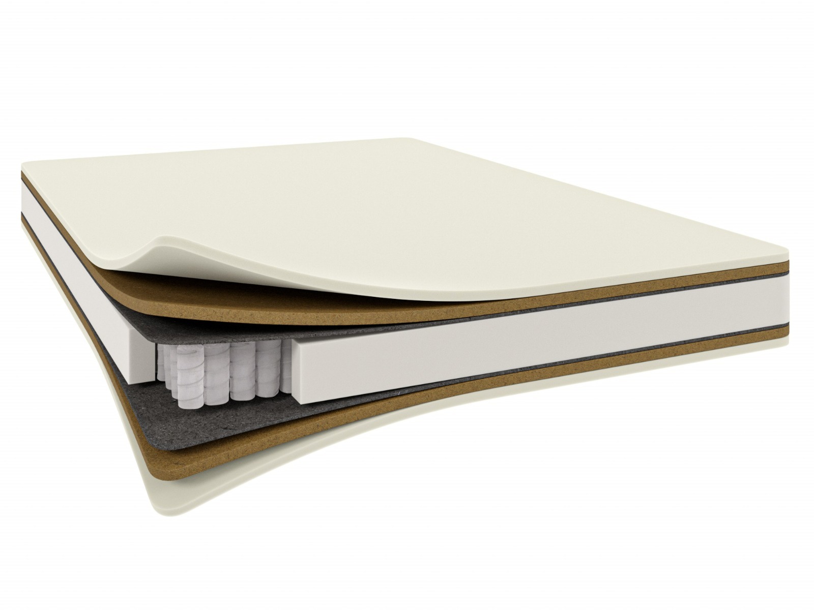 Термоскрепленное нетканое полотно добавляет матрасу прочности и увеличивает срок его службы. Латексированная кокосовая койра придает дополнительную жесткость и упругость.