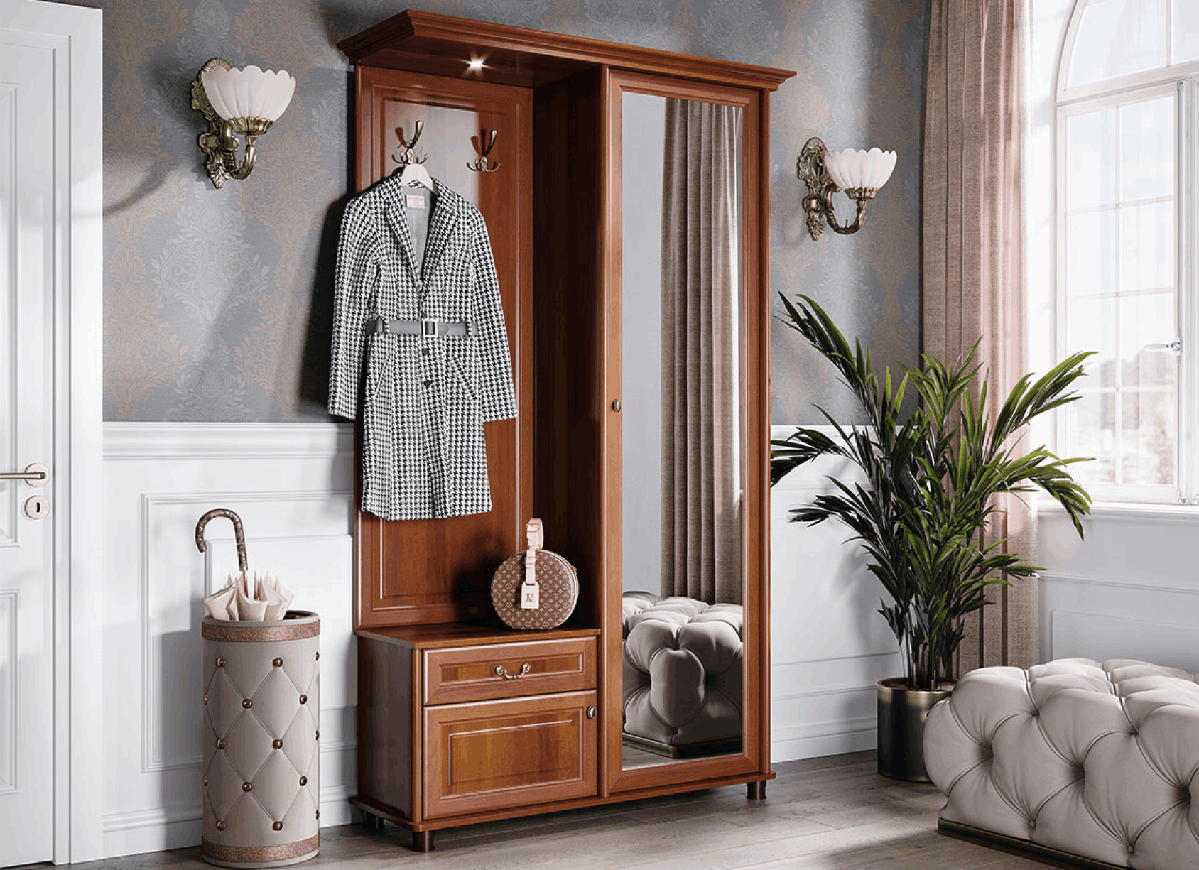 (ВхШхГ) с карнизом: 2100х1182х400 мм; без карниза: 2135х1252х435 мм