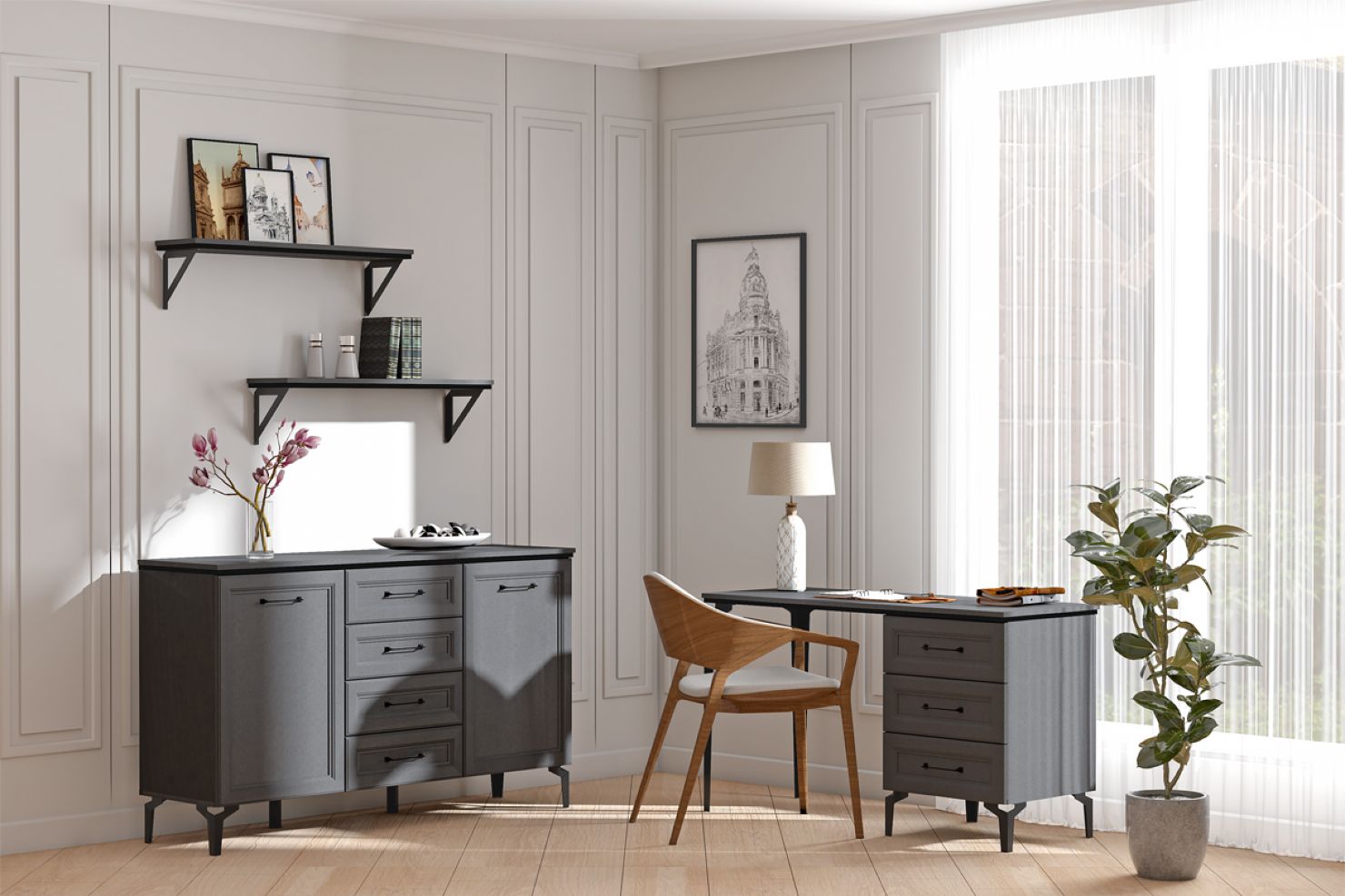 рабочего кабинета, прихожей. В нём можно хранить текстиль,