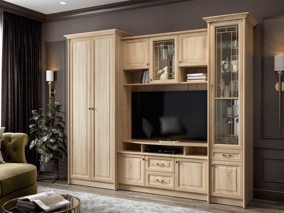 Классическая мебельная коллекция «Янна» - воплощение строгости и элегантности. Рамочные МДФ фасады и карнизы придают предметам мебели завершенный вид, наделяют их солидностью и изысканностью. Такая мебель смотрится благородно, дорого и стильно. В этой мебельной линейке все продумано до мелочей – как в эстетическом плане, так и в функциональном. Прочная металлическая фурнитура служит долго, ее не придется менять на новую. Направляющие полного выдвижения позволяют бесшумно и плавно открывать ящики. Кстати, ящики можно полностью заполнять любыми вещами и не бояться, что их дно провиснет: оно выполнено из прочной ДВП толщиной 3,2 мм. При изготовлении гарнитуров с витринами предусмотрено 2 вида фасадов: с лазерной гравировкой и декоративный витраж.