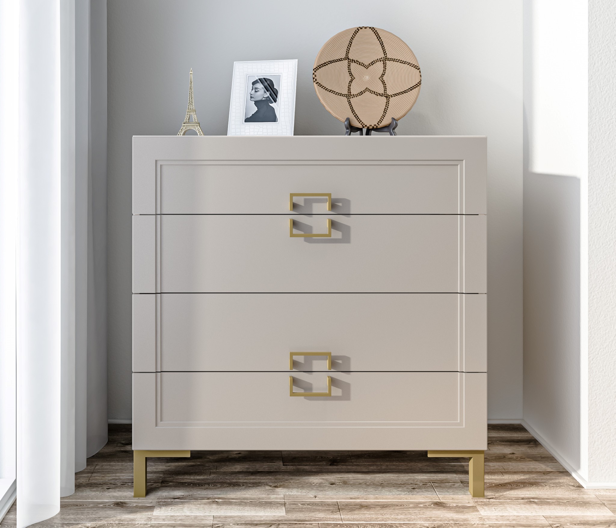 • Вместительный комод имеет 4 ящика.