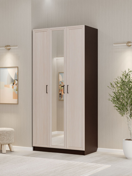 Шкаф распашной МДФ ШК-3М (Венге/ Молочный дуб) Код I0000455497