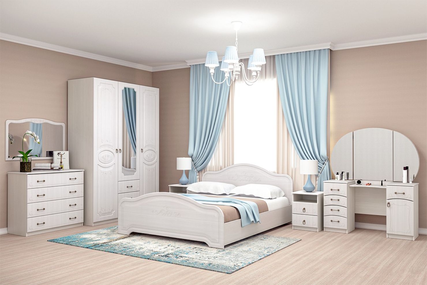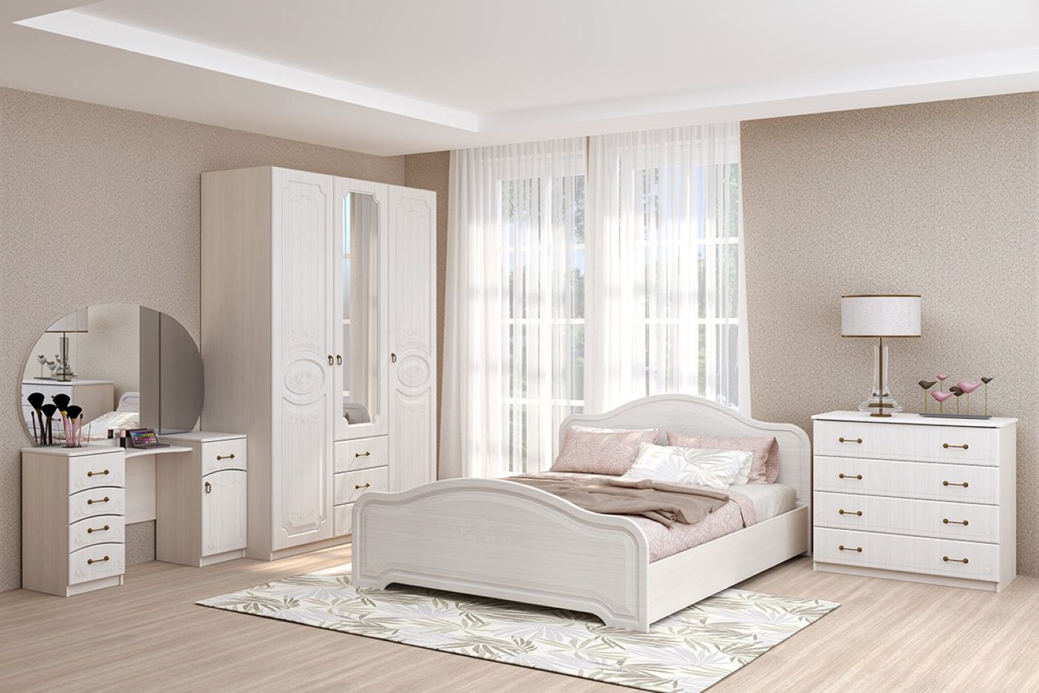 Модель освежает светлый оттенок и рельефный рисунок на фасадах.