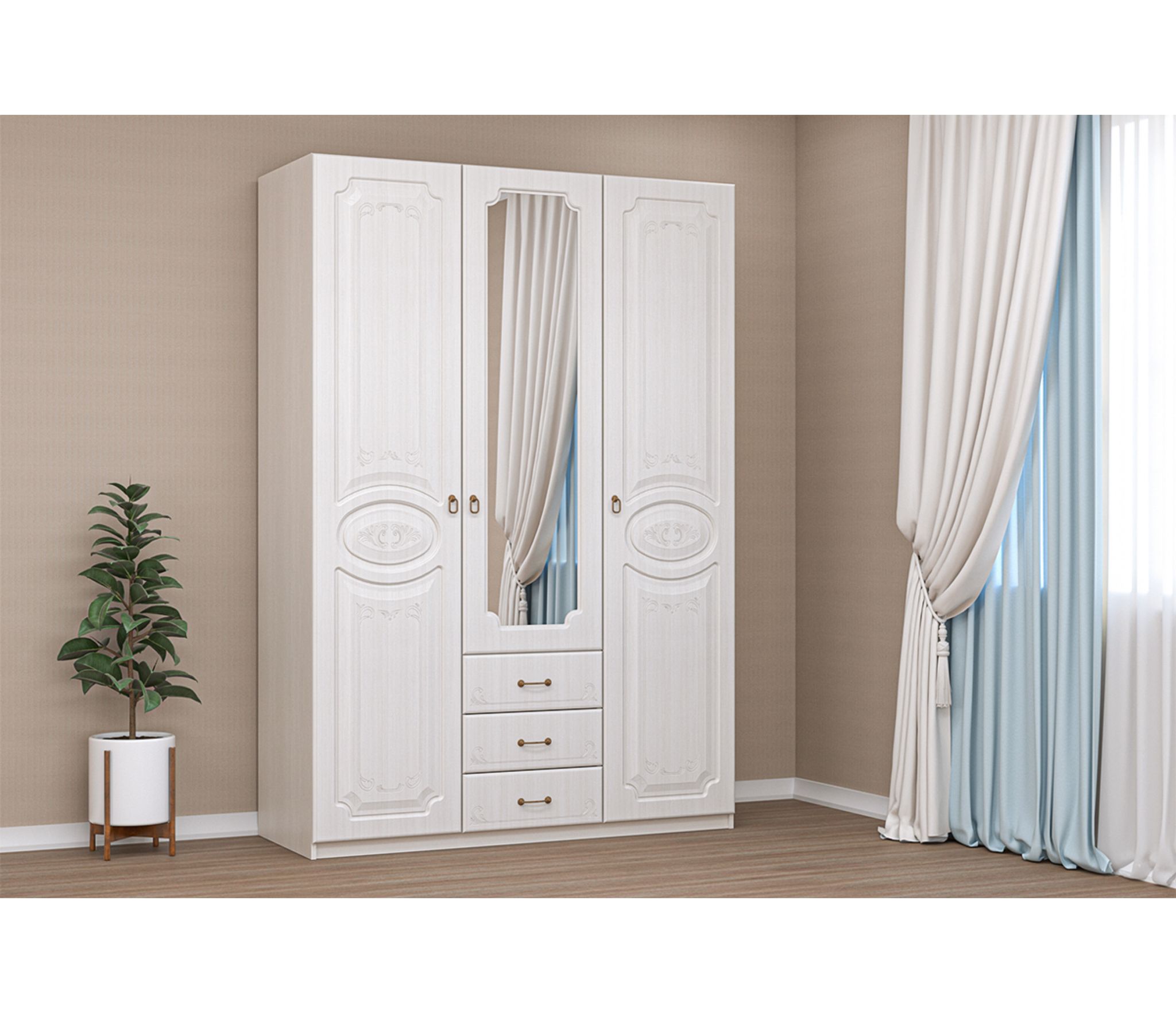 Шкаф 3х створчатый КЭТ-6 (Сандал Белый)