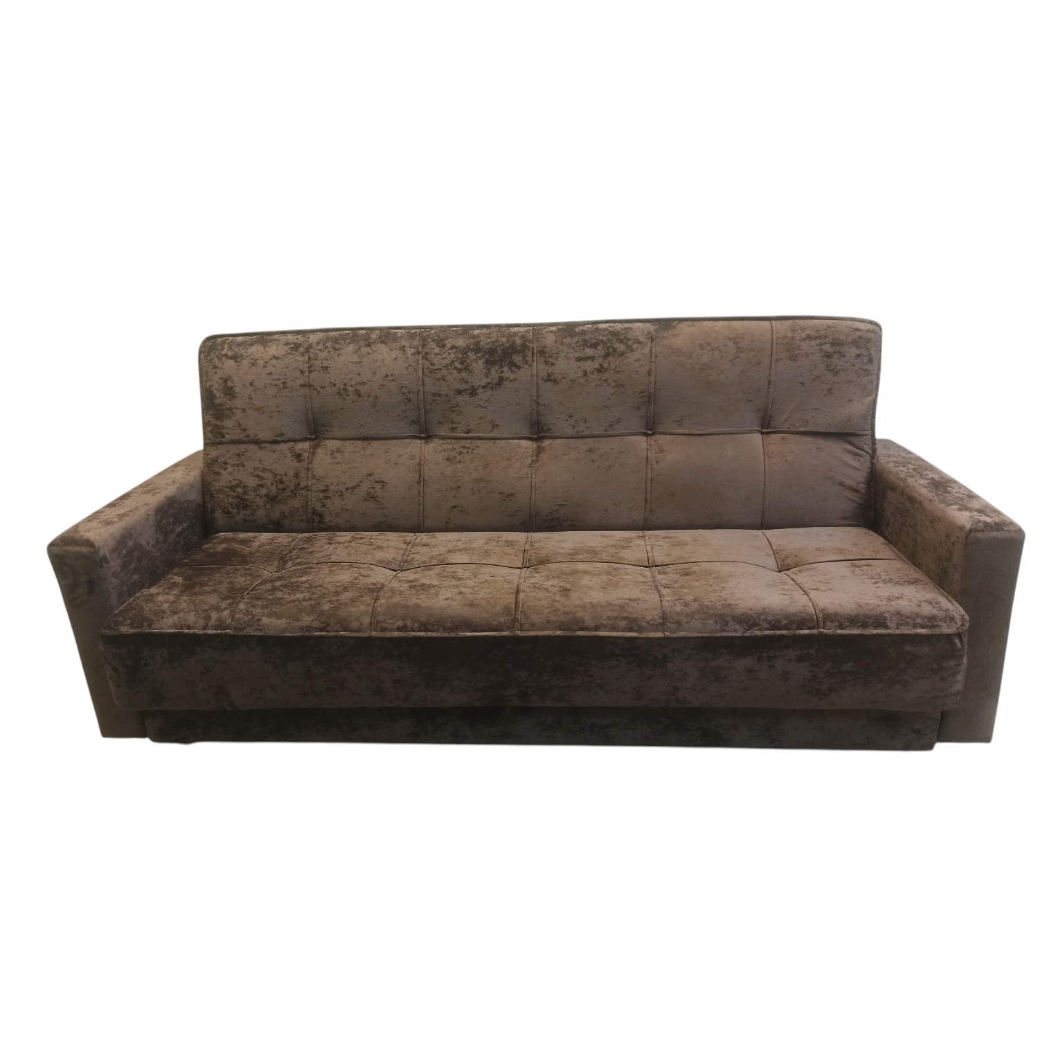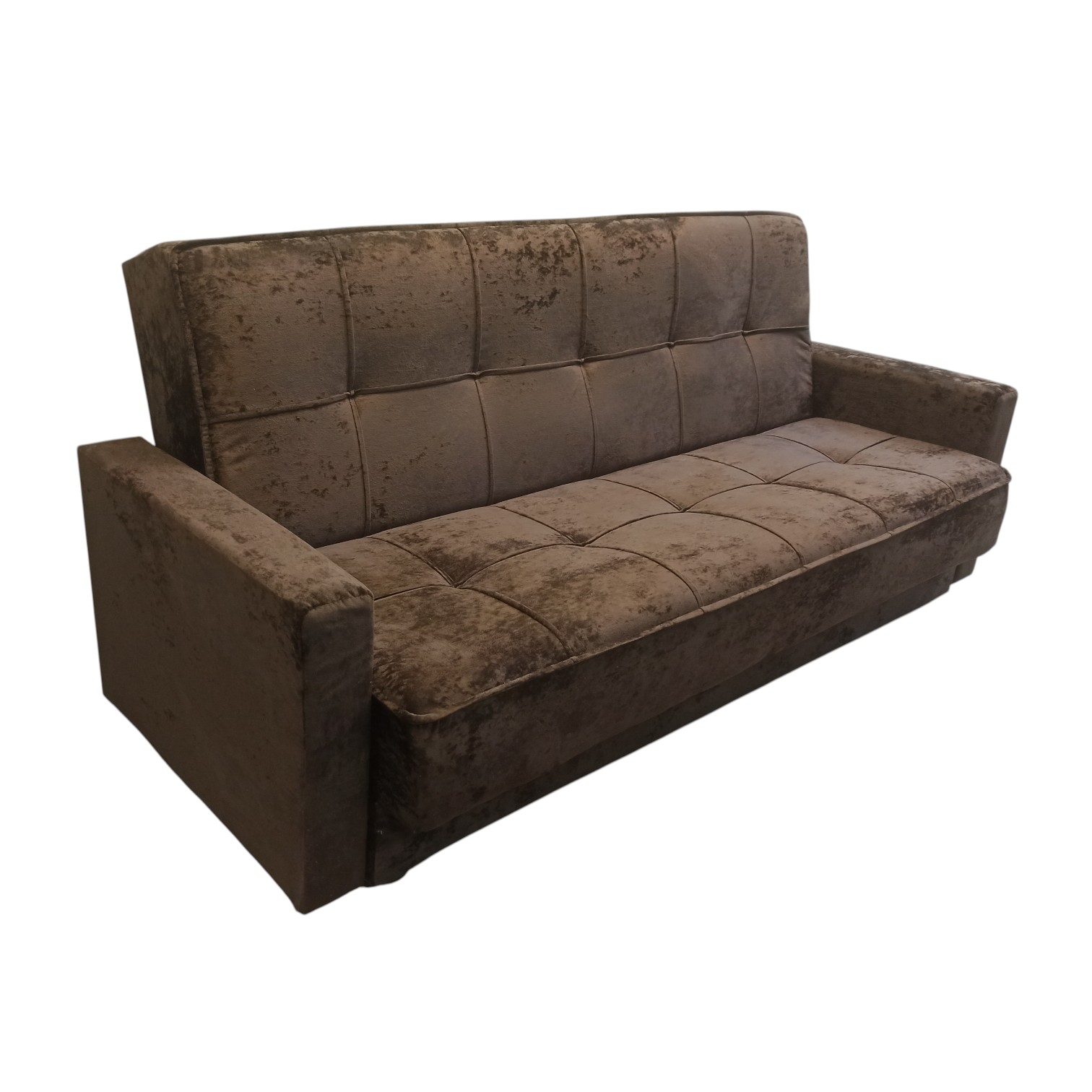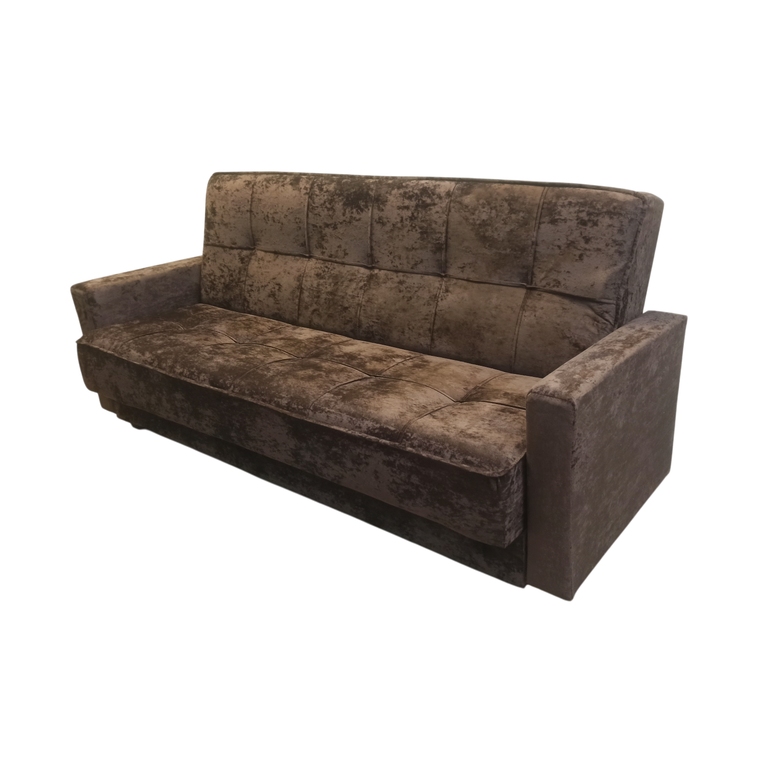 Диван-книжка изготовлен из ткани велюр. ВЕЛЮР - на вид напоминает бархат, приятен на ощупь – мягкий и пушистый. Ткань отличается прочностью и не выгорает на солнце. Материал представляет собой нетканое полотно, на которое методом напыления наносится бархатистая поверхность. Используются и пропитки – с их помощью ткань снабжается слоями, отторгающими влагу и грязь. Подходит для помещений с домашними животными. Диван имеет трансформацию раскладывания "Книжка". В положение спального места диван преобразуется путем откидывания спинки дивана назад. Сложить диван тоже не представит труда. Для этого нужно поднять переднюю часть сидения и наклонить ее вперед до щелчка пружины в механизме. Когда пружинный механизм сработает, части дивана зафиксируются в положении угла. После этого наклоняйте поднятое ранее сидение на себя.