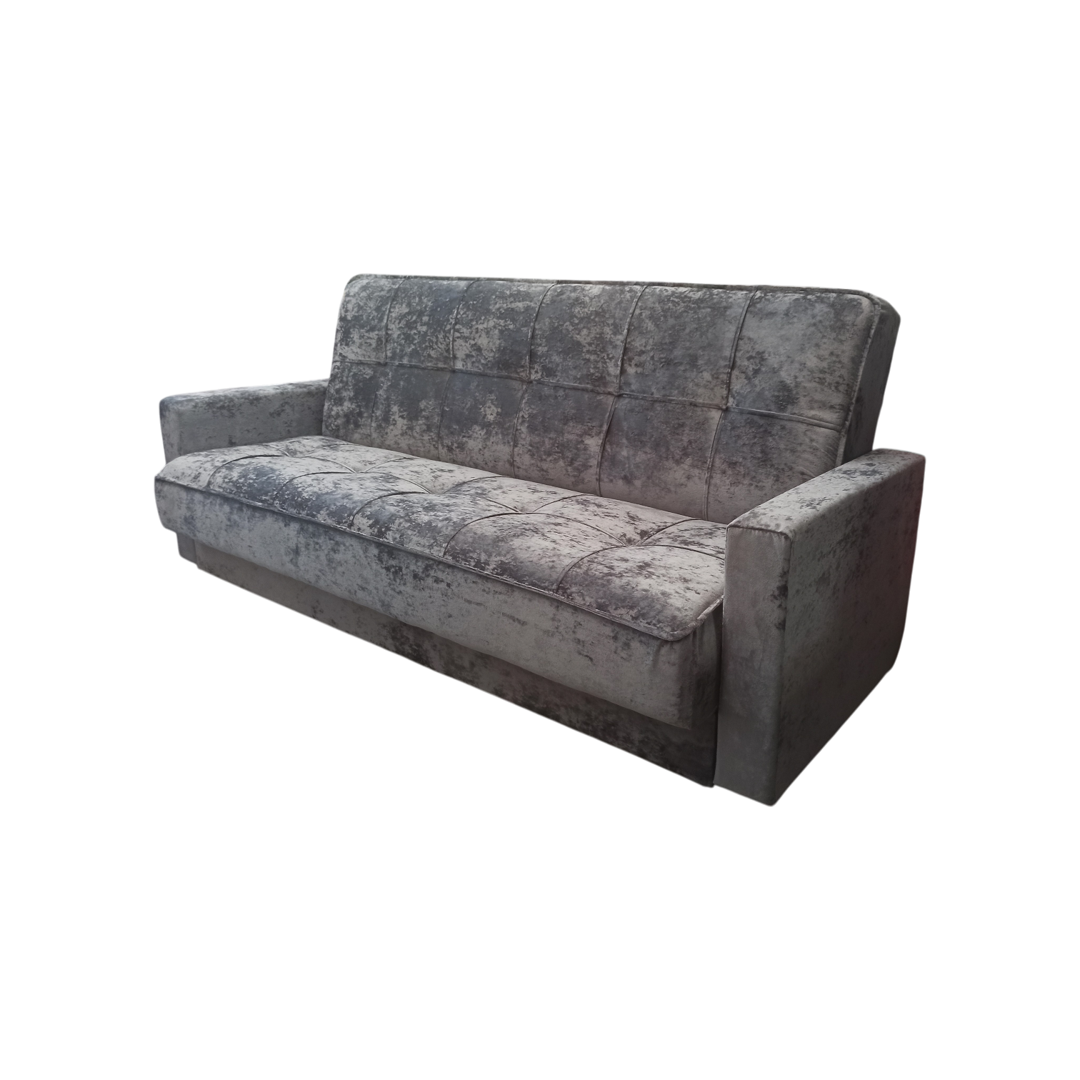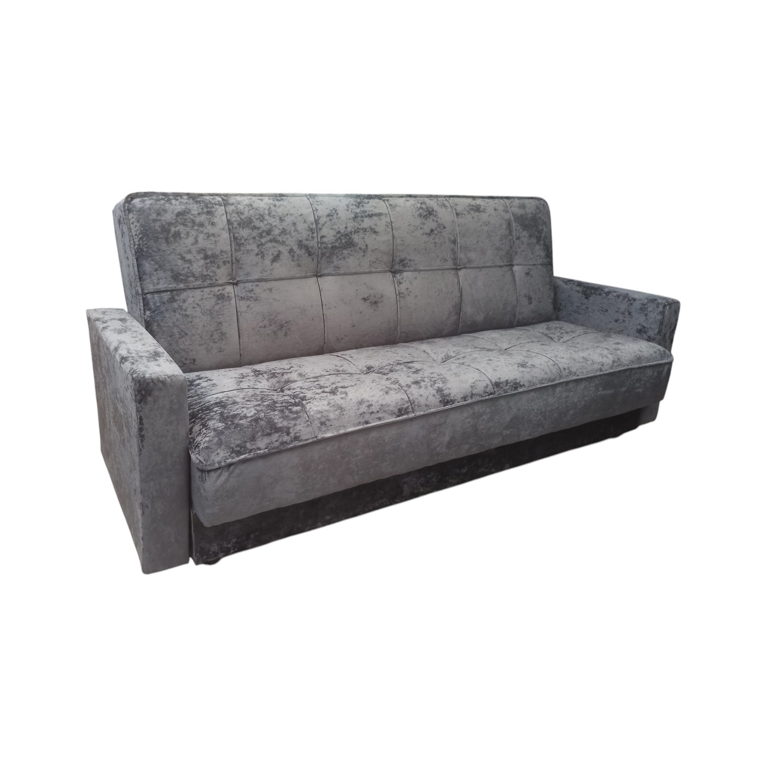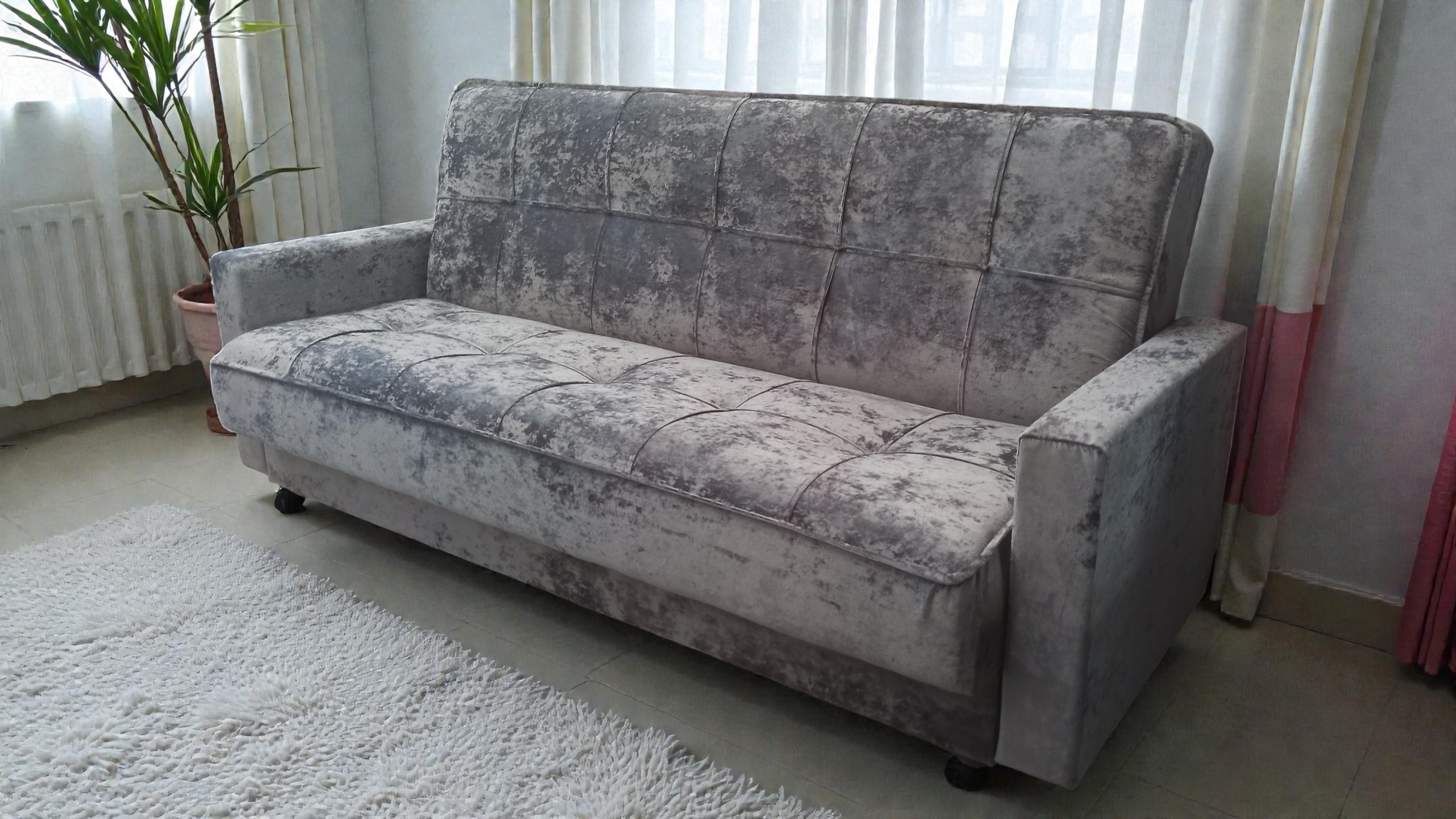 Диван-книжка изготовлен из ткани велюр. ВЕЛЮР - на вид напоминает бархат, приятен на ощупь – мягкий и пушистый. Ткань отличается прочностью и не выгорает на солнце. Материал представляет собой нетканое полотно, на которое методом напыления наносится бархатистая поверхность. Используются и пропитки – с их помощью ткань снабжается слоями, отторгающими влагу и грязь. Подходит для помещений с домашними животными. Диван имеет трансформацию раскладывания "Книжка". В положение спального места диван преобразуется путем откидывания спинки дивана назад. Сложить диван тоже не представит труда. Для этого нужно поднять переднюю часть сидения и наклонить ее вперед до щелчка пружины в механизме. Когда пружинный механизм сработает, части дивана зафиксируются в положении угла. После этого наклоняйте поднятое ранее сидение на себя.