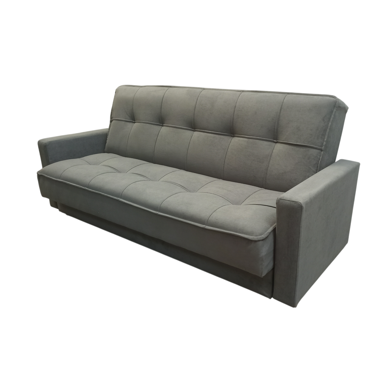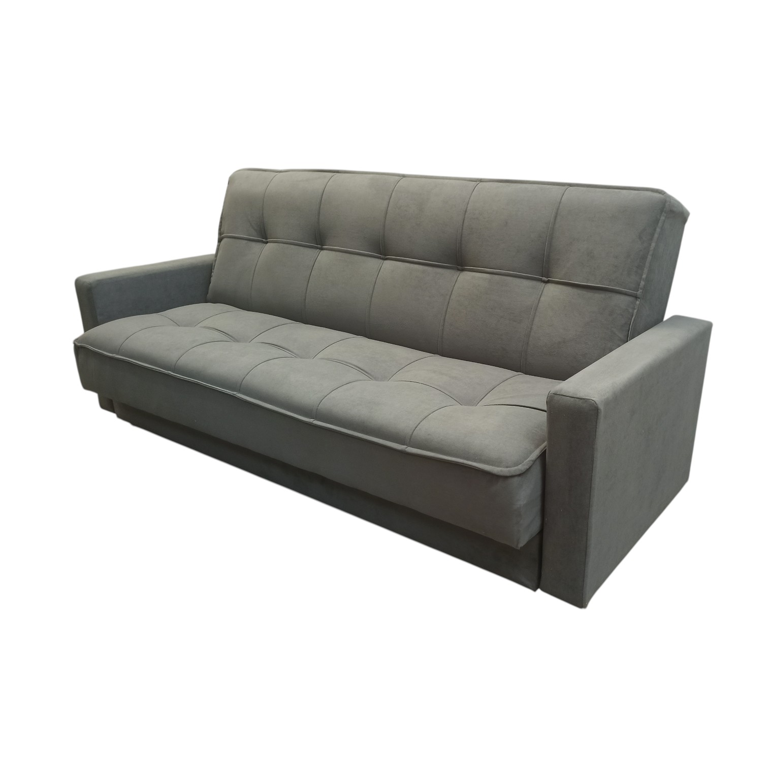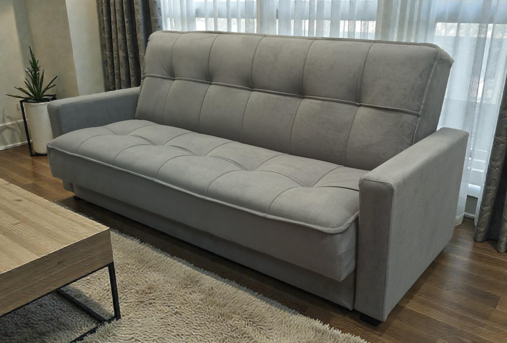 Диван-книжка изготовлен из ткани велюр. ВЕЛЮР - на вид напоминает бархат, приятен на ощупь – мягкий и пушистый. Ткань отличается прочностью и не выгорает на солнце. Материал представляет собой нетканое полотно, на которое методом напыления наносится бархатистая поверхность. Используются и пропитки – с их помощью ткань снабжается слоями, отторгающими влагу и грязь. Подходит для помещений с домашними животными. Диван имеет трансформацию раскладывания "Книжка". В положение спального места диван преобразуется путем откидывания спинки дивана назад. Сложить диван тоже не представит труда. Для этого нужно поднять переднюю часть сидения и наклонить ее вперед до щелчка пружины в механизме. Когда пружинный механизм сработает, части дивана зафиксируются в положении угла. После этого наклоняйте поднятое ранее сидение на себя.