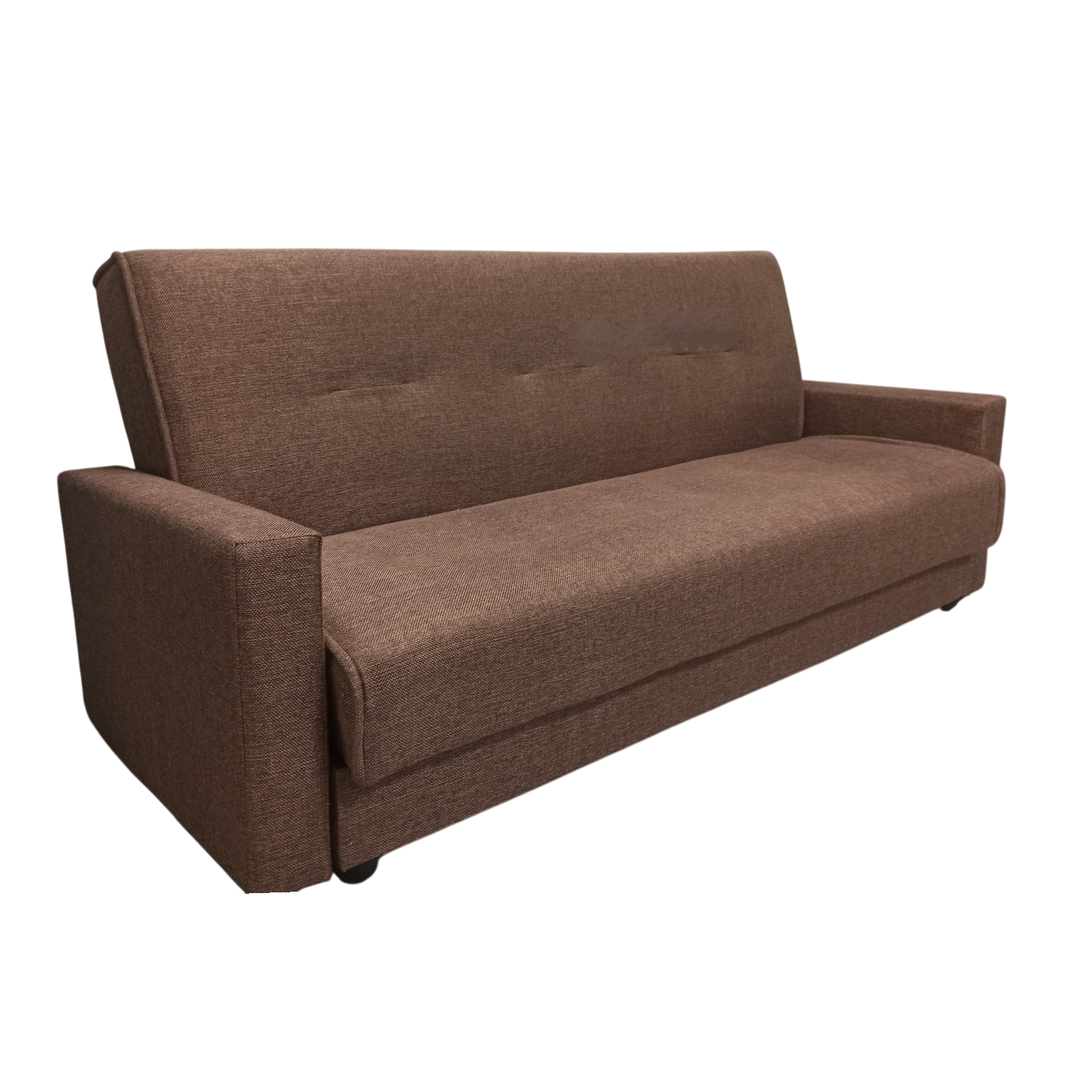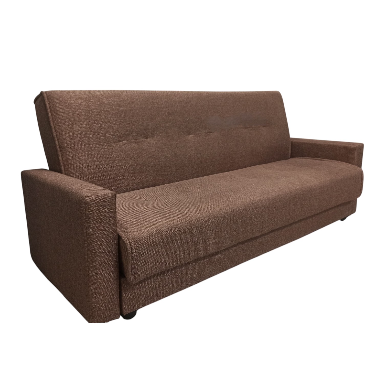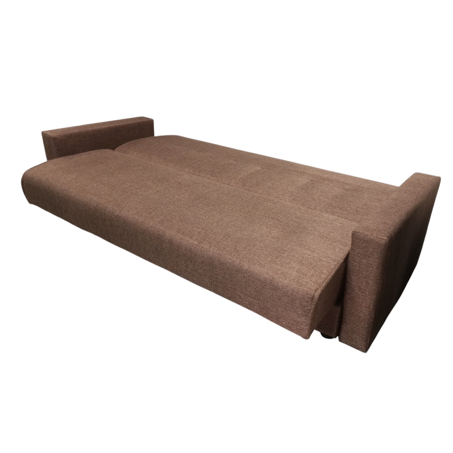 Диван-книжка изготовлен из ткани рогожка РОГОЖКА состоит из волокон хлопка, льна, шелка или шерсти. Для повышения износостойкости изделий к натуральным нитям добавляются волокна акрила или полиэстера. Ткань обладает грубой и плотной текстурой, напоминающей мешковину, которая придаёт ей прочность, долговечность и несминаемость. Диван имеет трансформацию раскладывания "Книжка". В положение спального места диван преобразуется путем откидывания спинки дивана назад. Сложить диван тоже не представит труда. Для этого нужно поднять переднюю часть сидения и наклонить ее вперед до щелчка пружины в механизме. Когда пружинный механизм сработает, части дивана зафиксируются в положении угла. После этого наклоняйте поднятое ранее сидение на себя.
