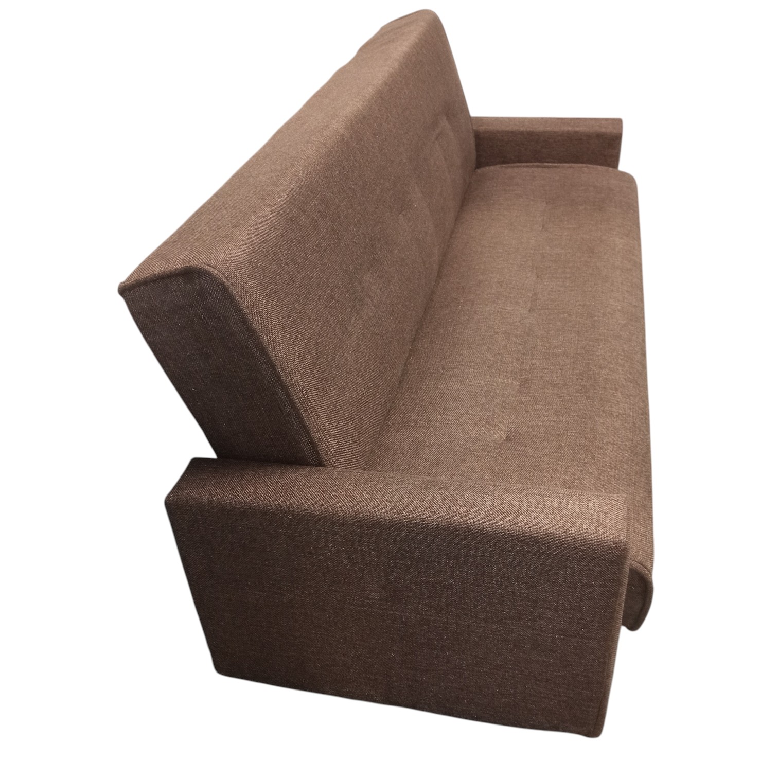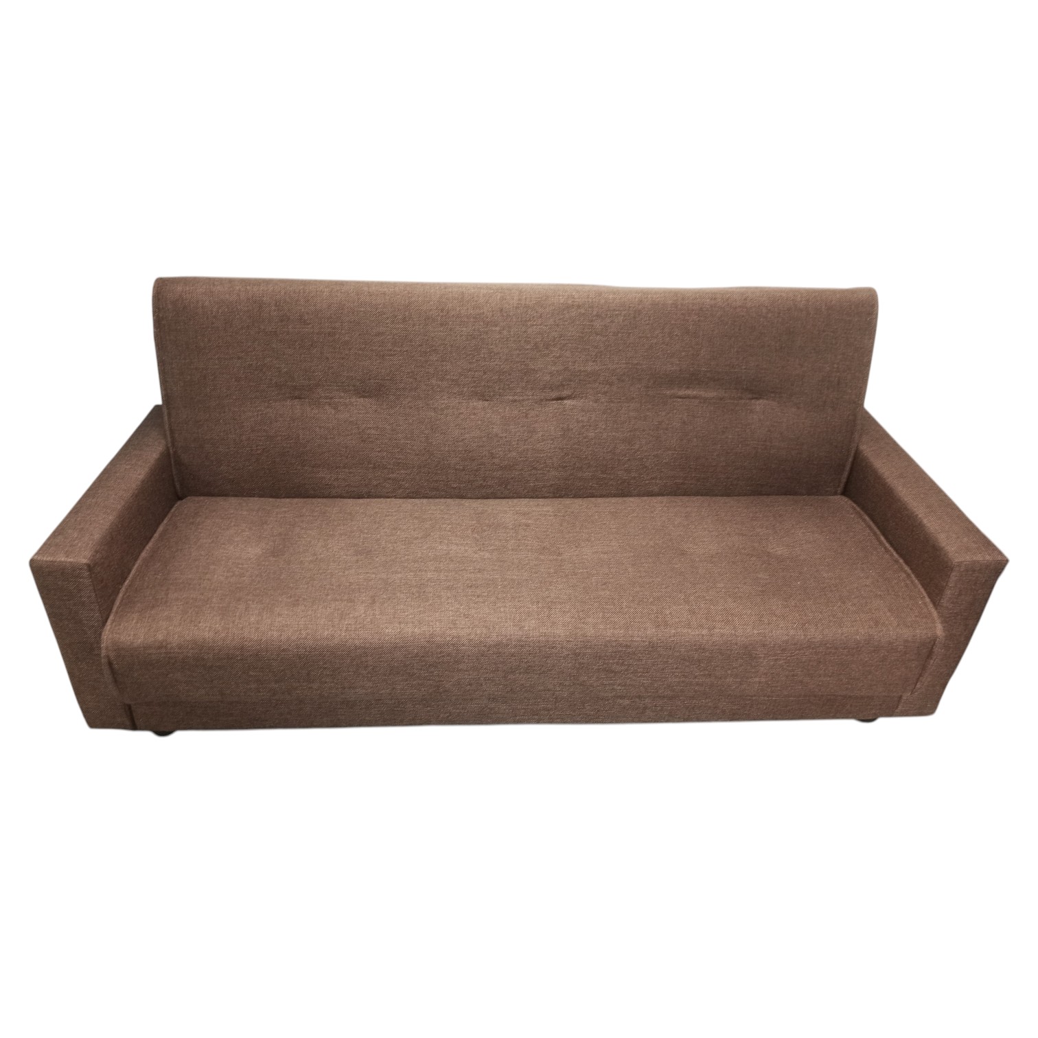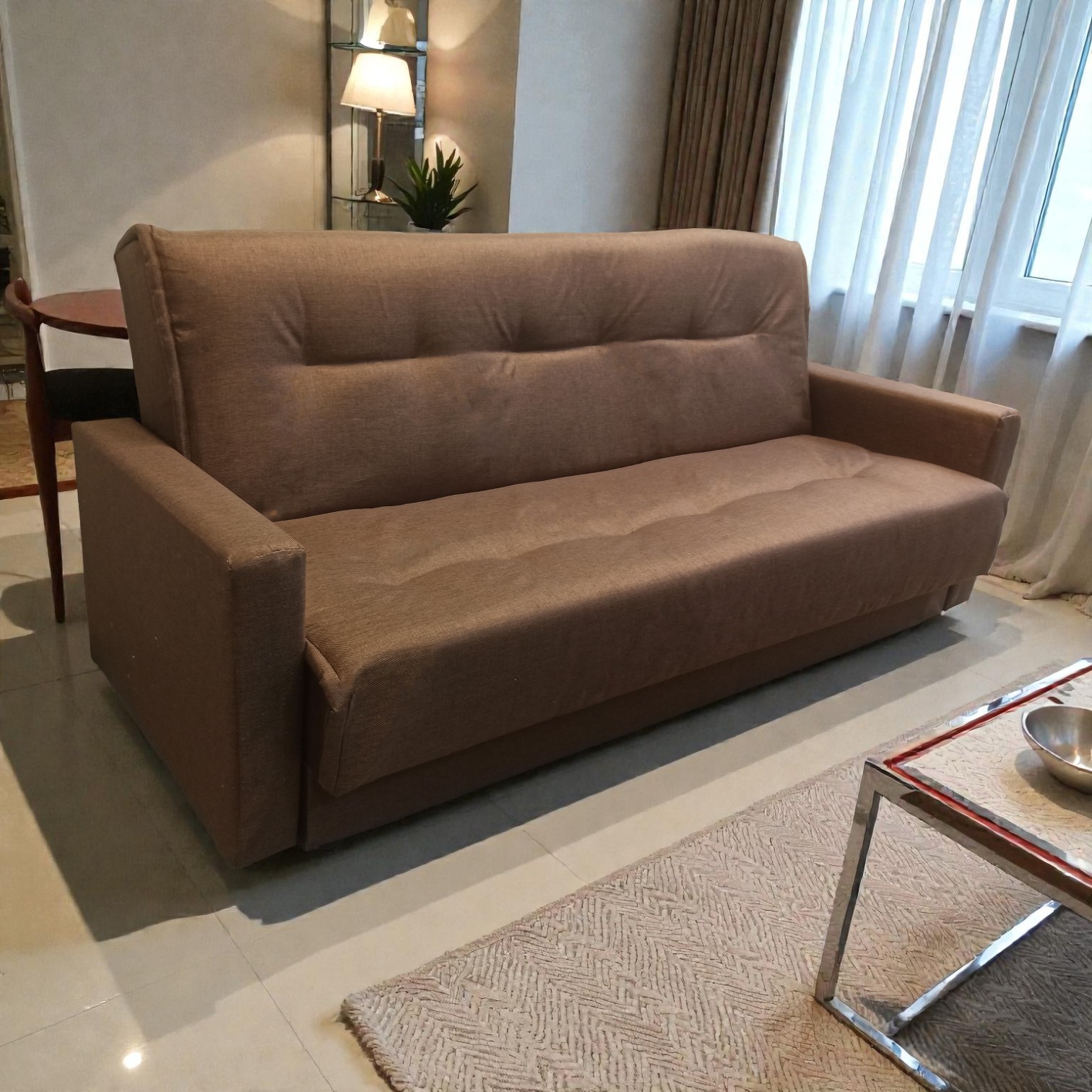 Диван-книжка изготовлен из ткани рогожка РОГОЖКА состоит из волокон хлопка, льна, шелка или шерсти. Для повышения износостойкости изделий к натуральным нитям добавляются волокна акрила или полиэстера. Ткань обладает грубой и плотной текстурой, напоминающей мешковину, которая придаёт ей прочность, долговечность и несминаемость. Диван имеет трансформацию раскладывания "Книжка". В положение спального места диван преобразуется путем откидывания спинки дивана назад. Сложить диван тоже не представит труда. Для этого нужно поднять переднюю часть сидения и наклонить ее вперед до щелчка пружины в механизме. Когда пружинный механизм сработает, части дивана зафиксируются в положении угла. После этого наклоняйте поднятое ранее сидение на себя.