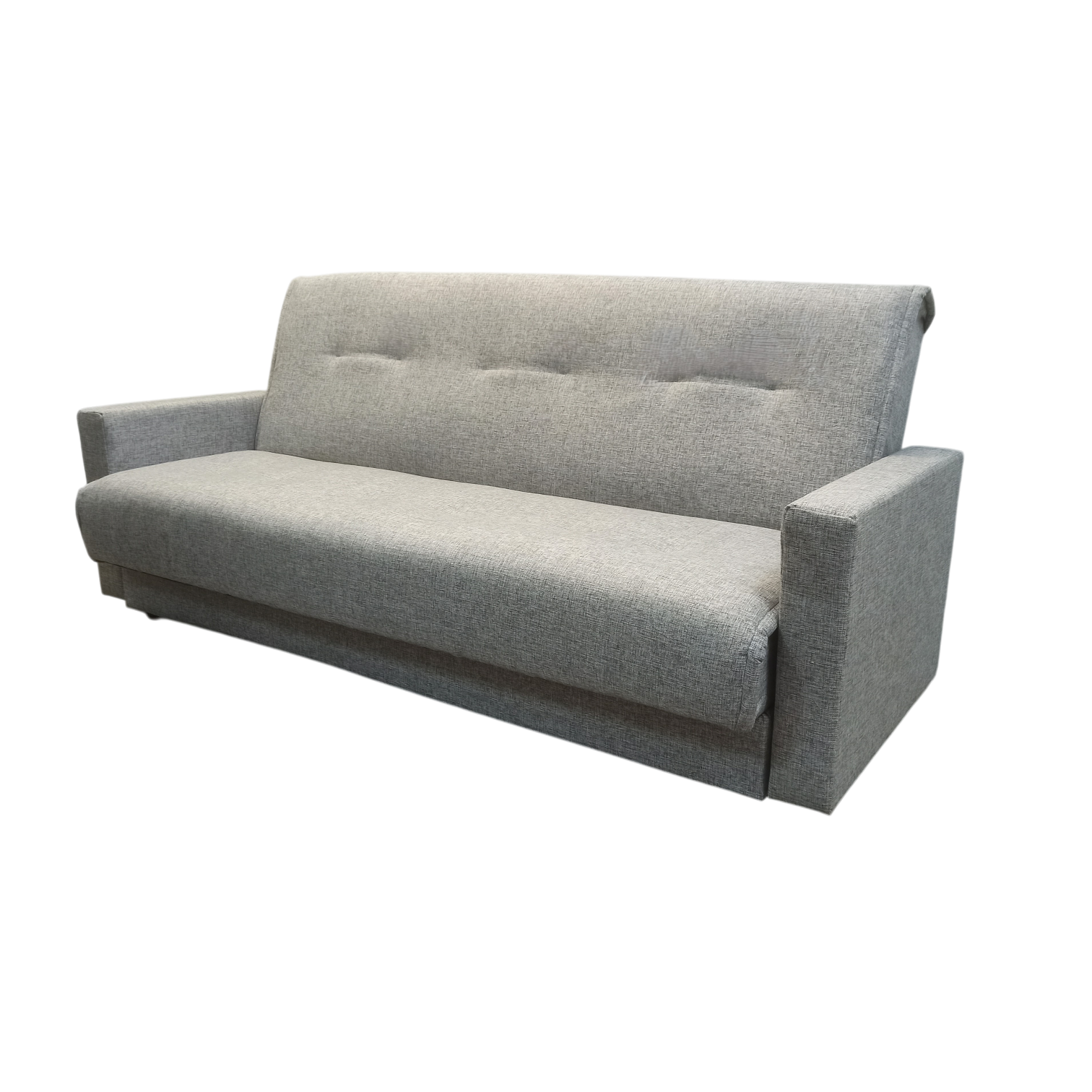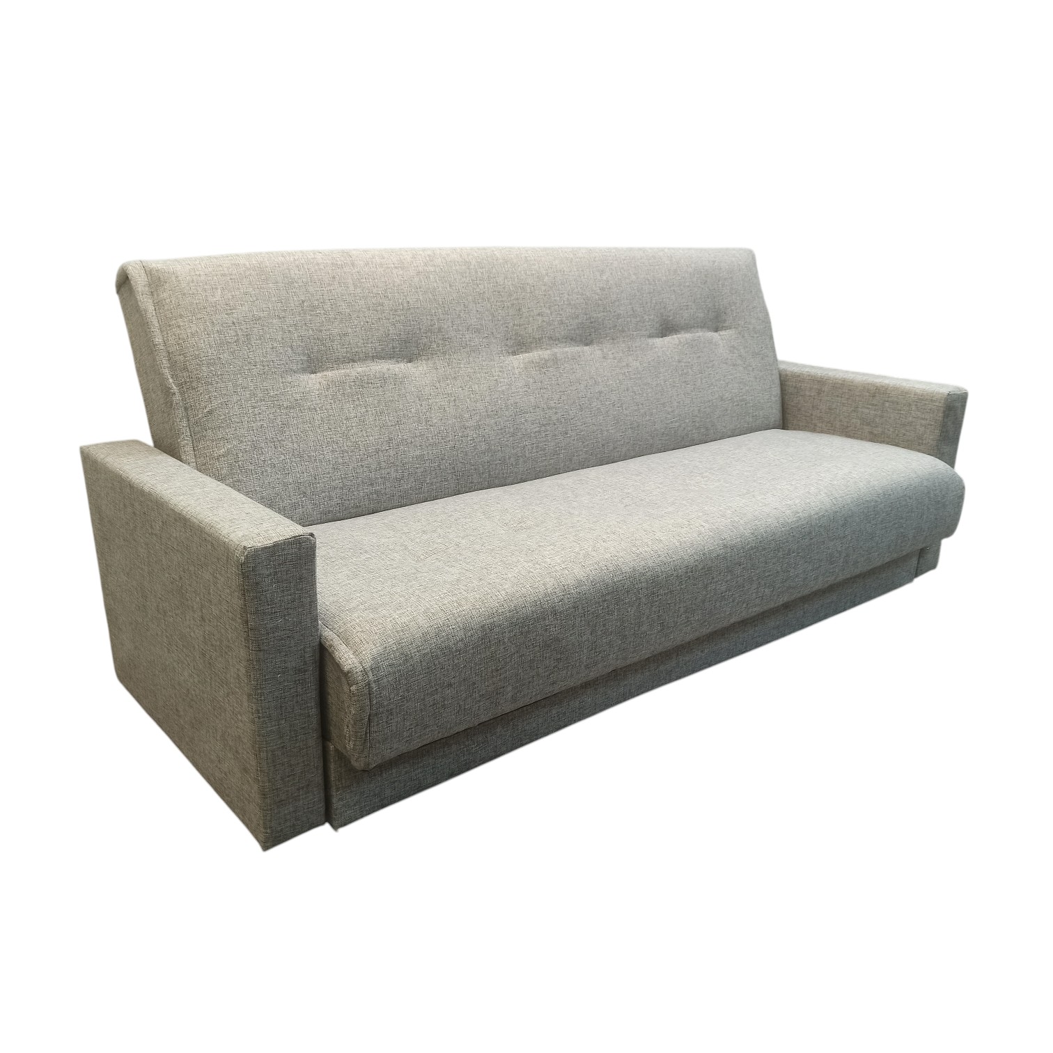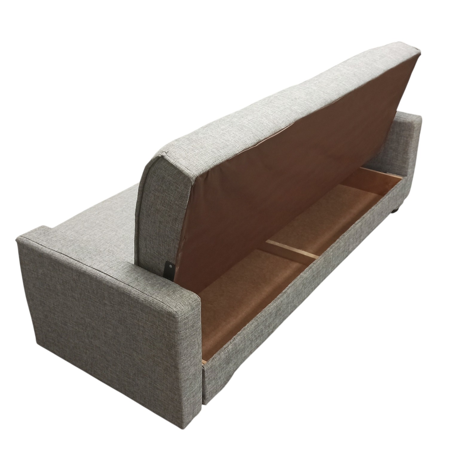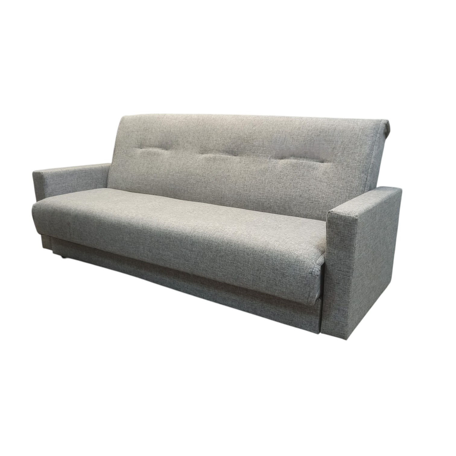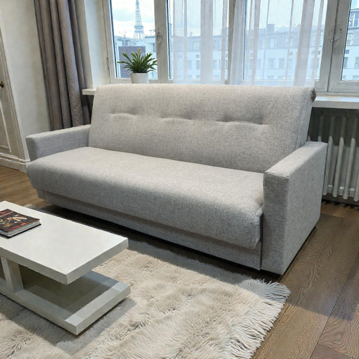 Диван-книжка изготовлен из ткани рогожка РОГОЖКА состоит из волокон хлопка, льна, шелка или шерсти. Для повышения износостойкости изделий к натуральным нитям добавляются волокна акрила или полиэстера. Ткань обладает грубой и плотной текстурой, напоминающей мешковину, которая придаёт ей прочность, долговечность и несминаемость. Диван имеет трансформацию раскладывания "Книжка". В положение спального места диван преобразуется путем откидывания спинки дивана назад. Сложить диван тоже не представит труда. Для этого нужно поднять переднюю часть сидения и наклонить ее вперед до щелчка пружины в механизме. Когда пружинный механизм сработает, части дивана зафиксируются в положении угла. После этого наклоняйте поднятое ранее сидение на себя.
