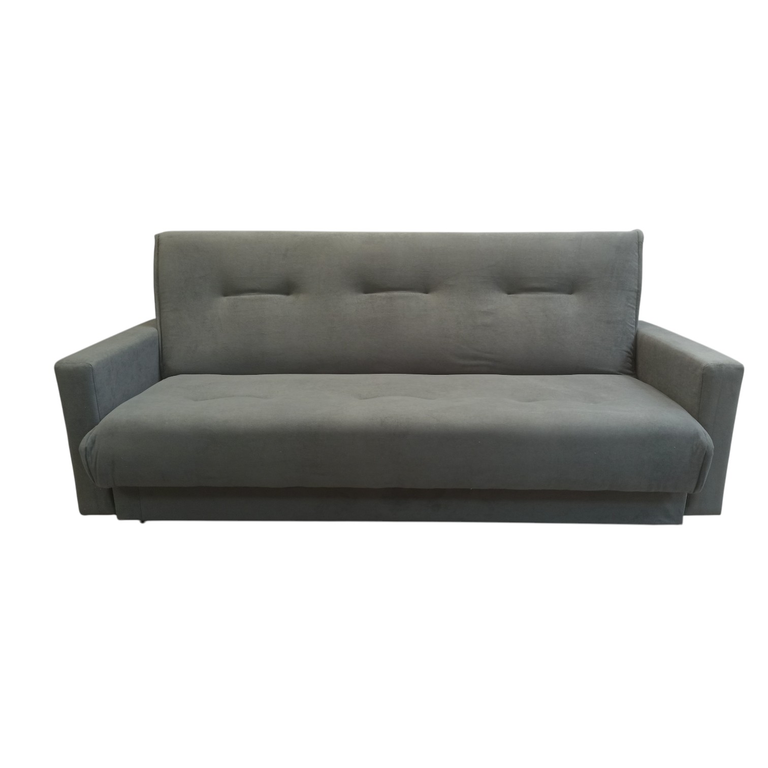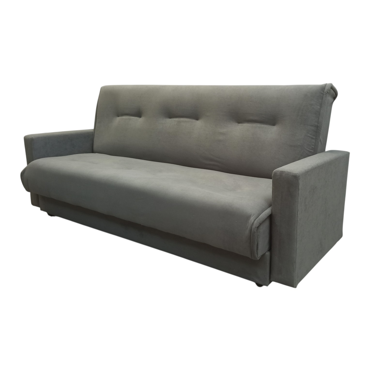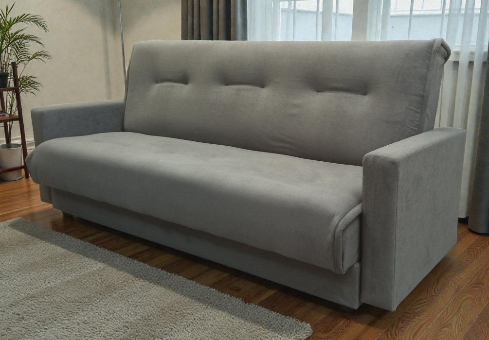 Диван-книжка изготовлен из ткани велюр. ВЕЛЮР - на вид напоминает бархат, приятен на ощупь – мягкий и пушистый. Ткань отличается прочностью и не выгорает на солнце. Материал представляет собой нетканое полотно, на которое методом напыления наносится бархатистая поверхность. Используются и пропитки – с их помощью ткань снабжается слоями, отторгающими влагу и грязь. Подходит для помещений с домашними животными. Диван имеет трансформацию раскладывания "Книжка". В положение спального места диван преобразуется путем откидывания спинки дивана назад. Сложить диван тоже не представит труда. Для этого нужно поднять переднюю часть сидения и наклонить ее вперед до щелчка пружины в механизме. Когда пружинный механизм сработает, части дивана зафиксируются в положении угла. После этого наклоняйте поднятое ранее сидение на себя.
