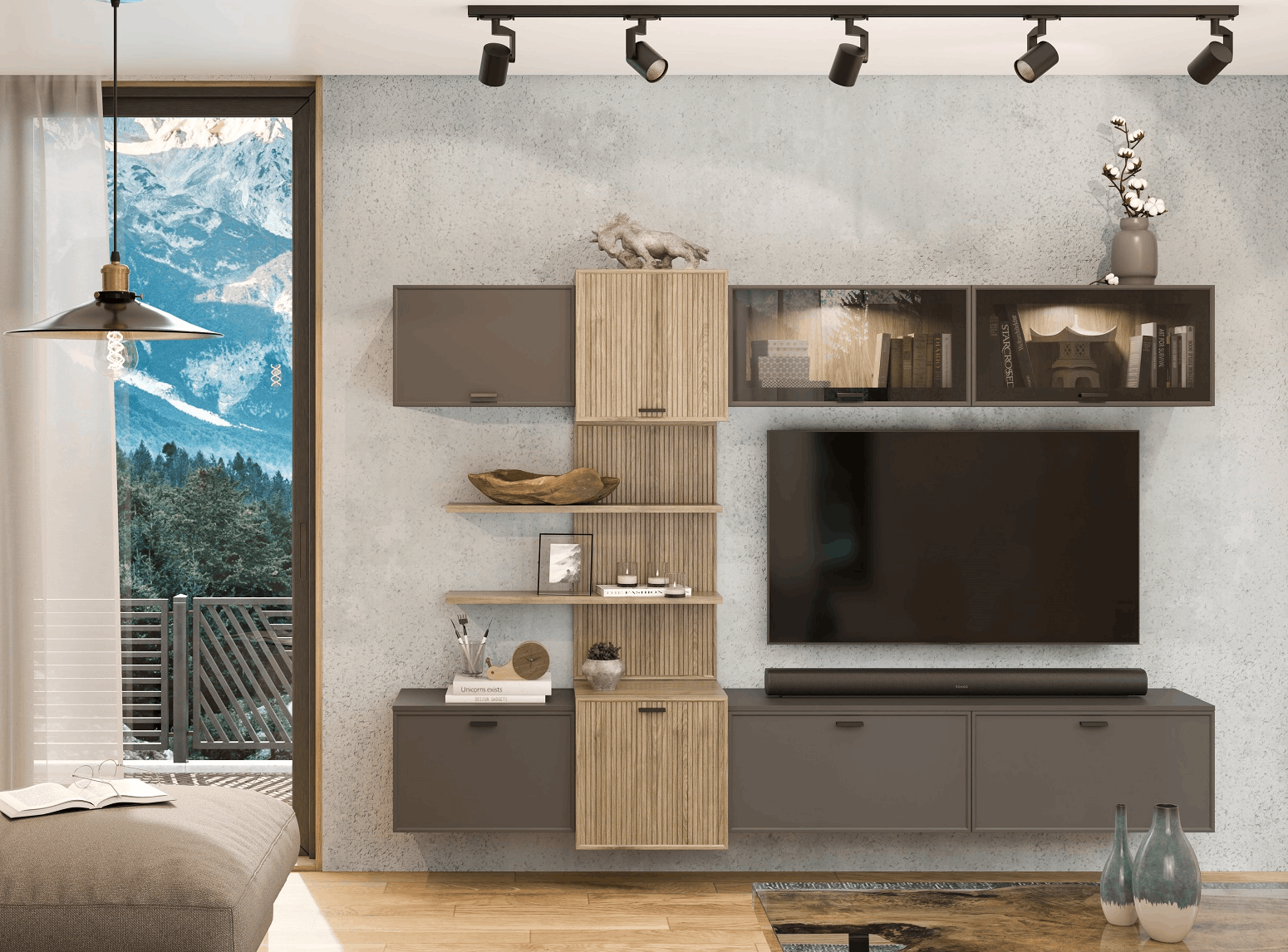 Отзывы о Столплит Модульная гостиная Стелла композиция 4 Серый Оникс/Гикори Светлый Ребристый