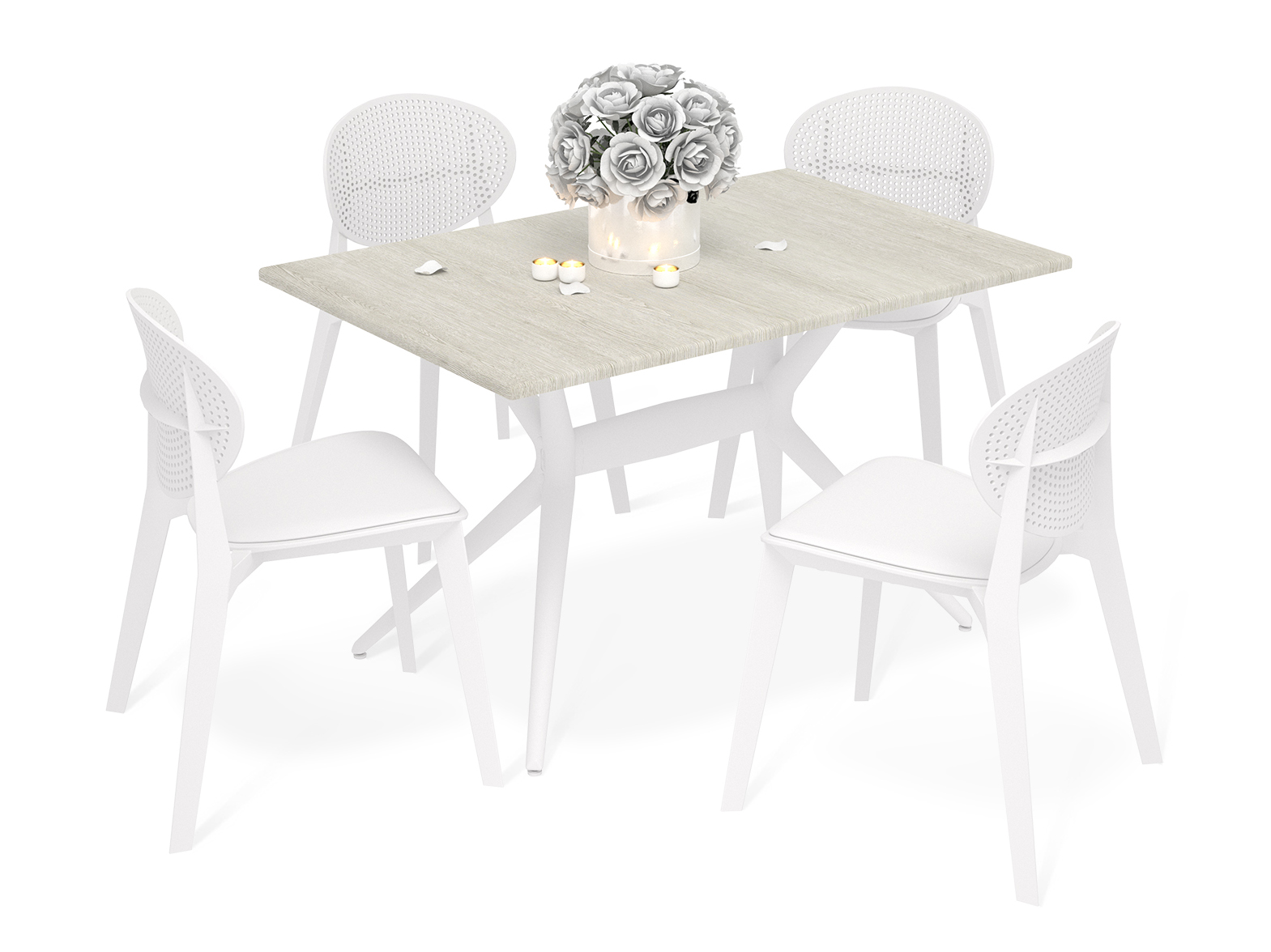 Для совместных трапез - готовый обеденный комплект с удобными стульями.