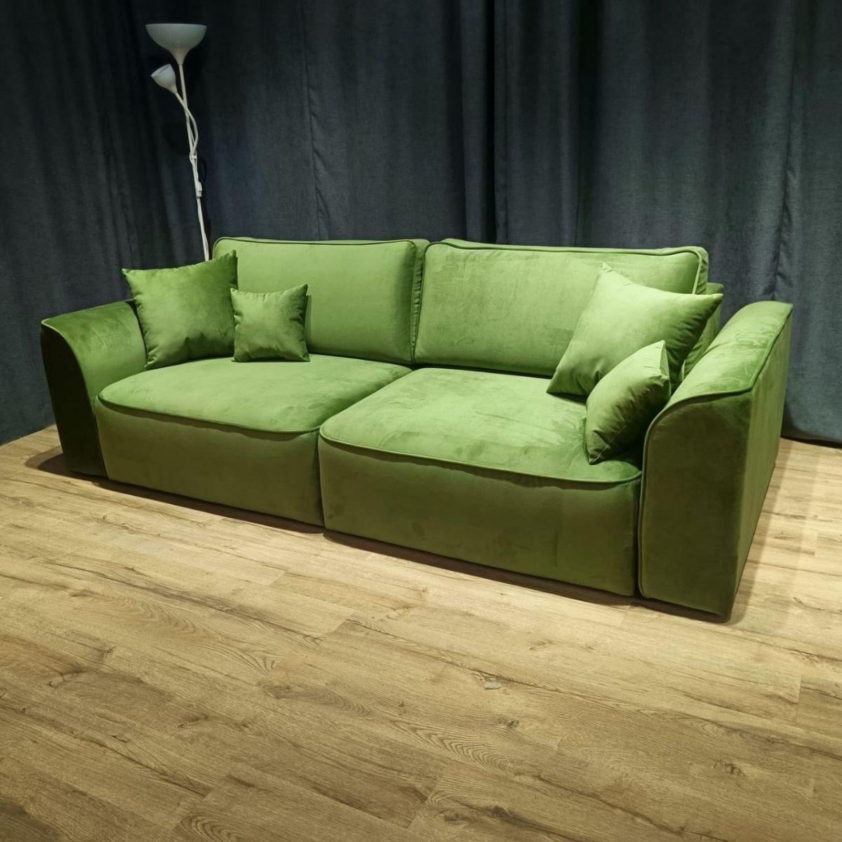 Прочные ножки из фанеры и бруса гарантируют устойчивость, а благородный велюр отличается приятной текстурой и устойчивостью к износу — при этом вы можете выбрать любой цвет обивки по согласованию с нами, чтобы идеально вписать диван в ваш интерьер.