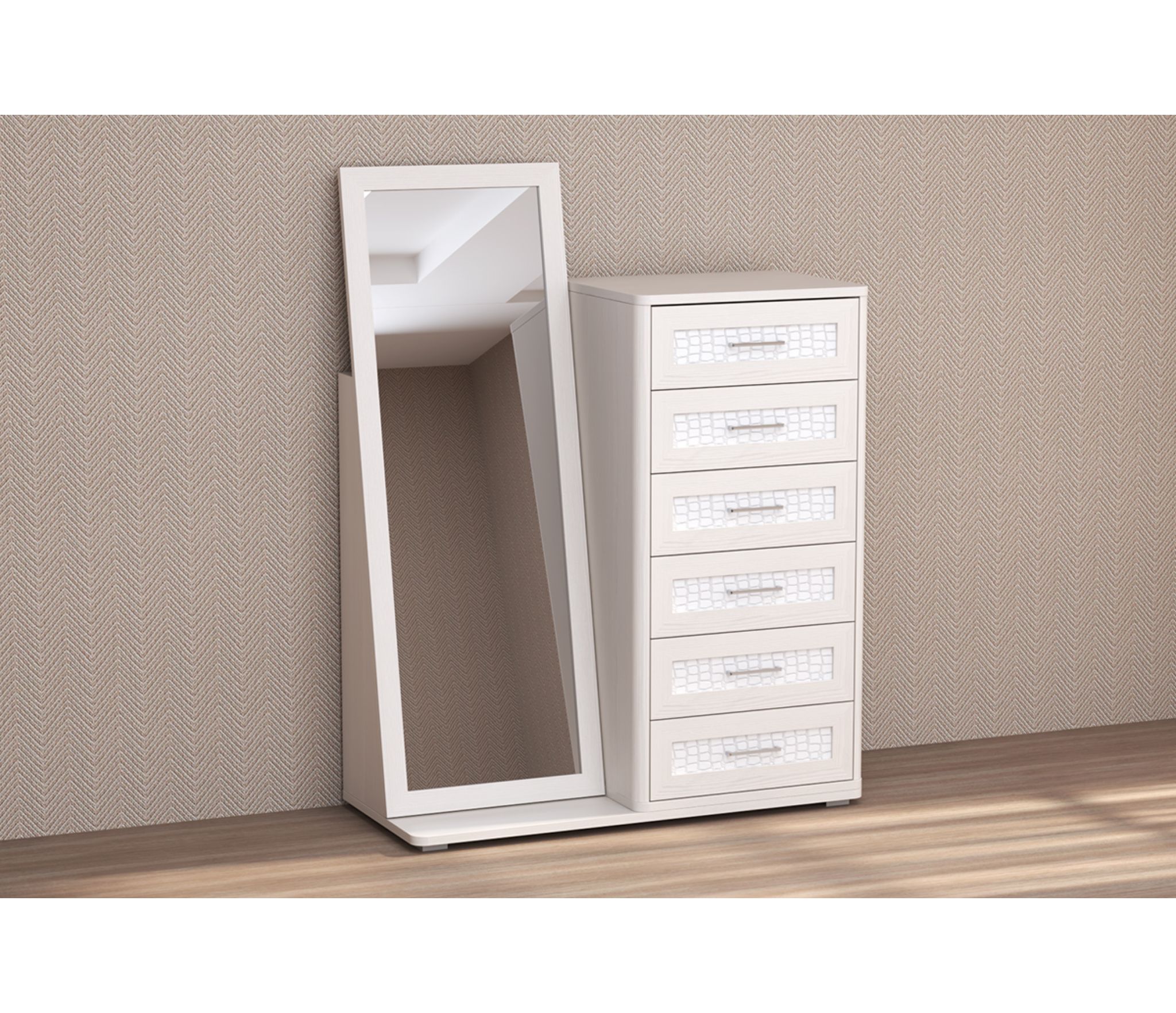 Зеркало относительно комода можно установить как с правой, так и с левой стороны.