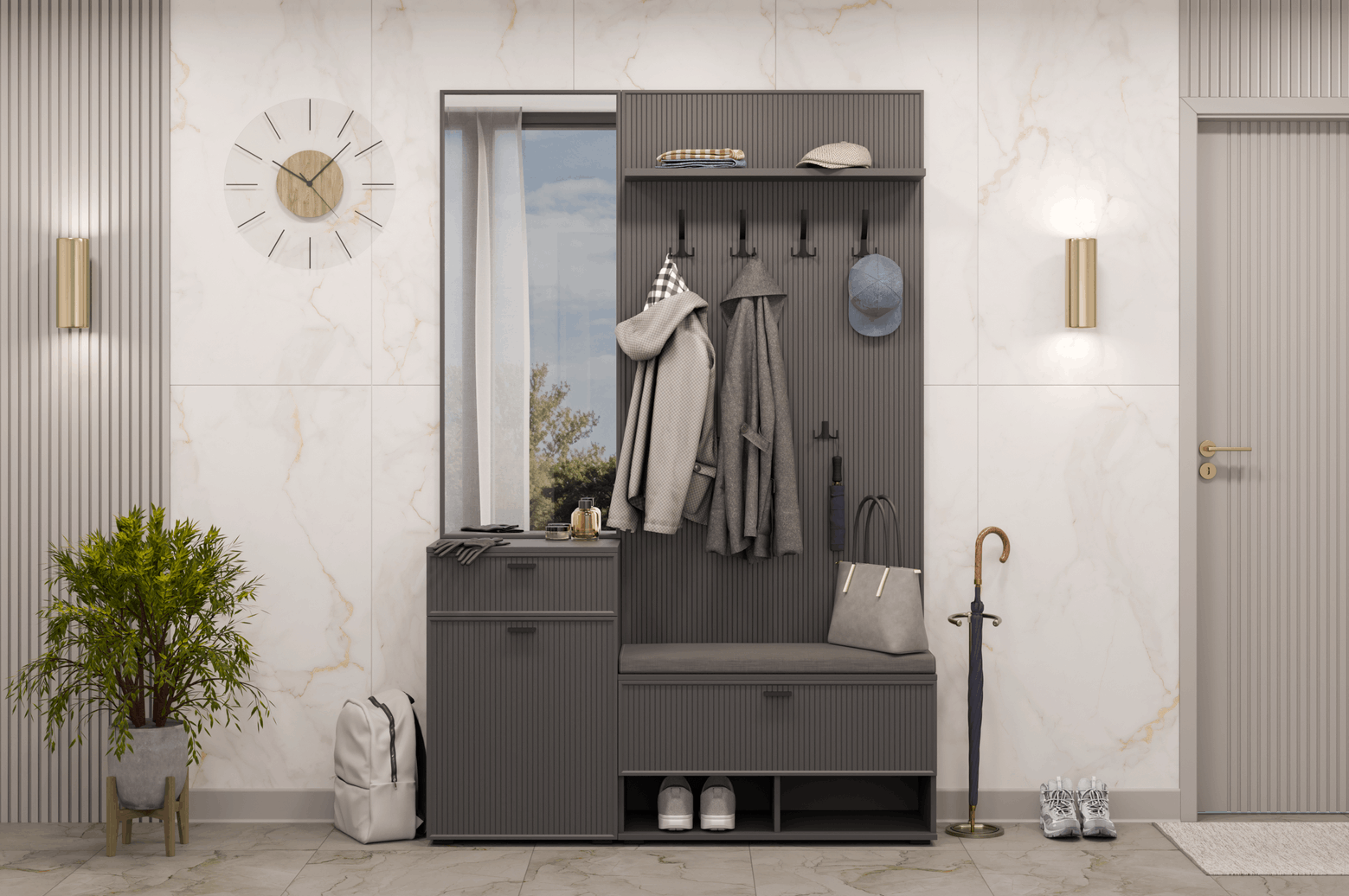 Отзывы о Столплит Модульная прихожая Стелла композиция 1 Серый Оникс Ребристый
